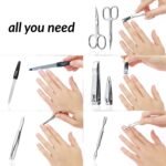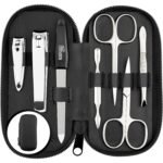 ✅ EVERTHING YOU NEED: This complete manicure pedicure set for women and men allows you to grow long, healthy, beautiful nails! Including 1x fingernail clippers, 1x toenail clippers, 1x tweezers, 1x nail-scissors, 1x cuticle-scissors 1x saphire-nail file 125/75µm – coarse and fine – all together in a soft black nappa leather manicure case.