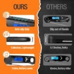 EASY TO USE: The ultra-thin anti-slip grip design makes this digital grill thermometer easy to maneuver. With its retractable probe, large hang loop and built-in strong magnetic at the back, you can conveniently store the cooking thermometer in the kitchen.