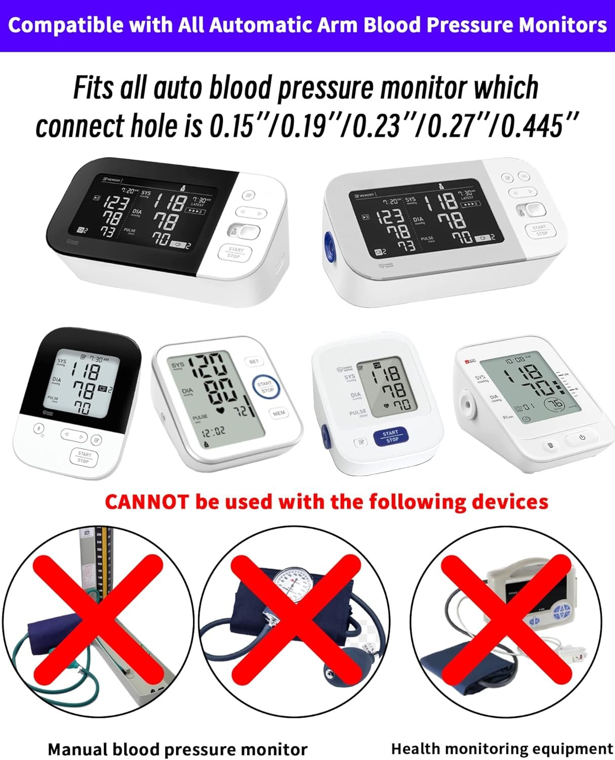 Compatible With Most Blood Pressure Monitors: The Medium cuff is compatible with Omron and other brands of blood pressure monitors. This blood pressure cuff comes with 5 connectors on the upper arm. If the connector size does not match, the connector is detachable and can be replaced with the original connector