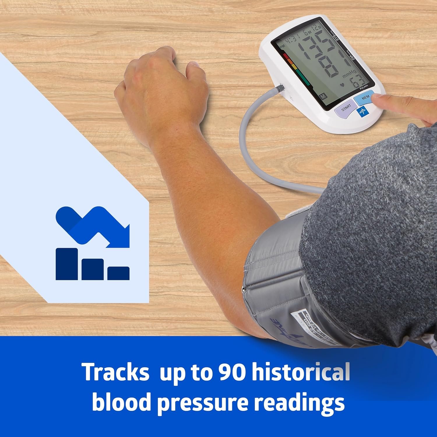 STORES UP TO 90 MEASUREMENTS: Track historical blood pressure and long-term health monitoring; displays average of last 3 readings; stores memory for up to 3 users