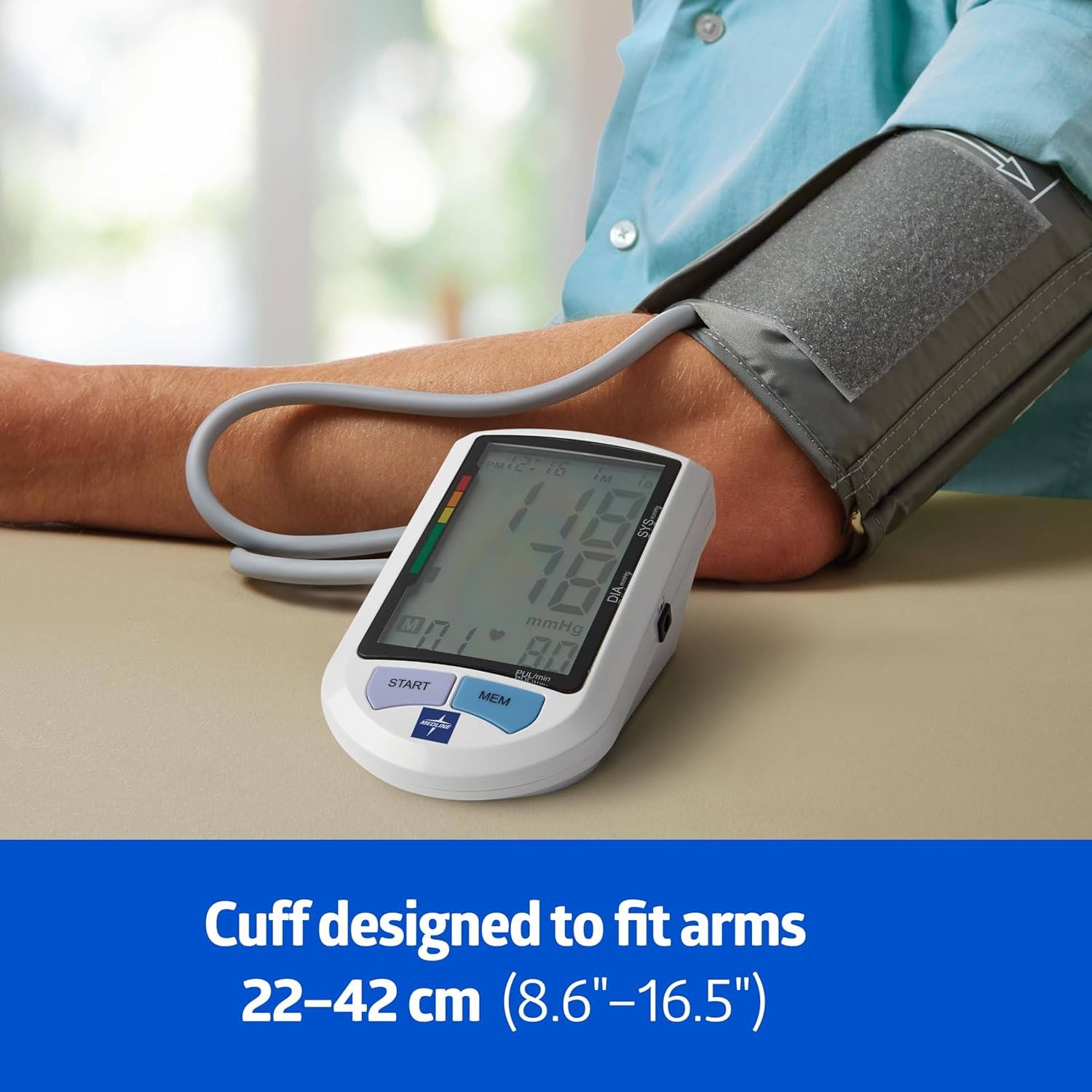For individuals who want to take charge of their own health, experience the precision and convenience of the Medline Elite Automatic Blood Pressure Monitor for home use. This easy-to-use, one-button start monitor is intended to measure the systolic and diastolic blood pressures and pulse rate of an adult individual by using a non-invasive technique, in which an inflatable cuff is wrapped around the upper arm. The device offers customized inflation levels for each individual patient and color gauge for quick detection. Designed for speed and ease of use, the Universal cuff, 22-42 cm (8.6”-16.5”), utilizes cutting-edge measure-during-deflating technology, providing fast results with minimal discomfort. The monitor also features a large easy-to-read LCD screen with a comparative scale to compare your results to optimal readings. With memory capacity for up to 90 measurements for 3 users, you can easily track your health progress over time.