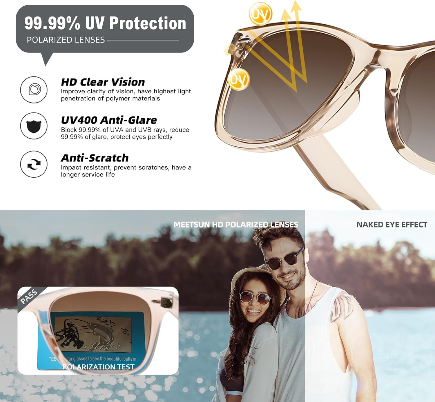 MEETSUN Polarized Sunglasses for Women Men Classic Retro Square Frame Driving Trendy Sun Glasses UV Protection