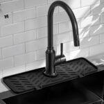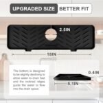 Meiliweser Silicone Faucet Splash Guard Gen 2 – Outlet & Slope Upgraded Faucet Water Catcher Mat – 18” x 5.1” – Sink Sponge Holder for Kitchen, Bathroom(Black)