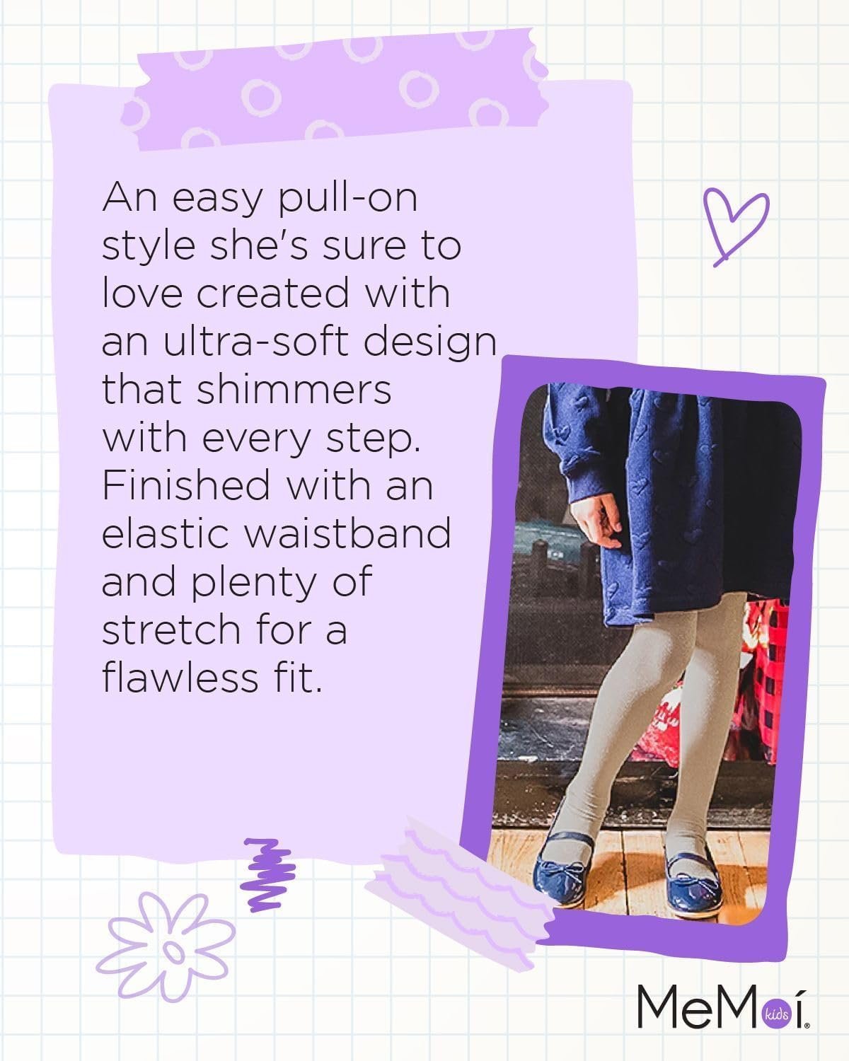 MeMoi Shining Star Shimmer Tights for Girls, Ultra Soft and Lightweight Opaque Girl Tights – Sizes 2-14