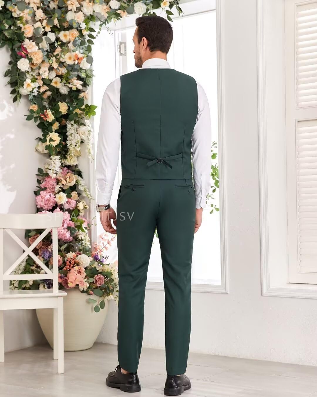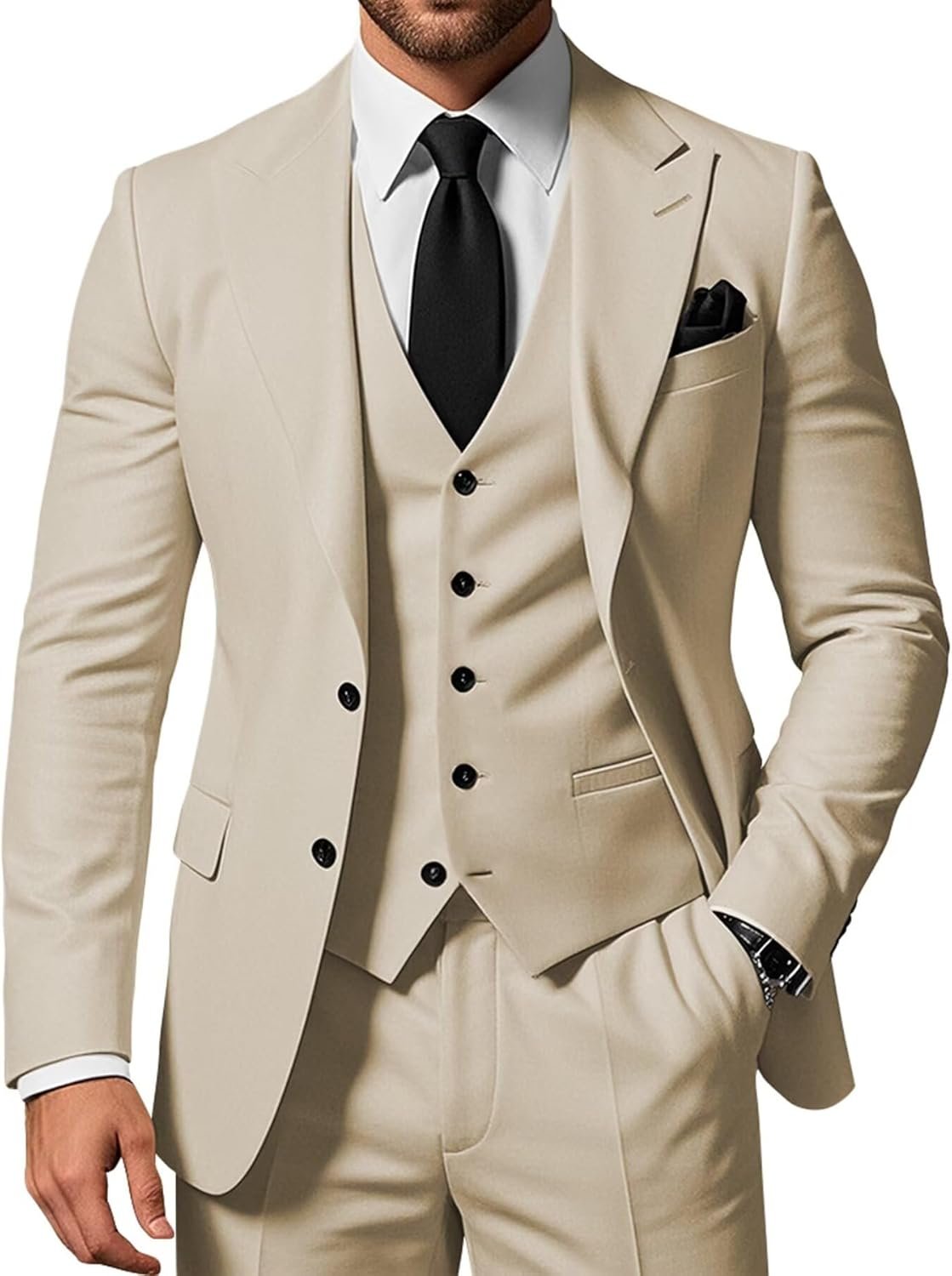 Men’s 3 Piece Suits Slim Fit Peak Lapel 2 Button Blazer Jacket Vest Pants Set Wedding Business Prom Party Suit