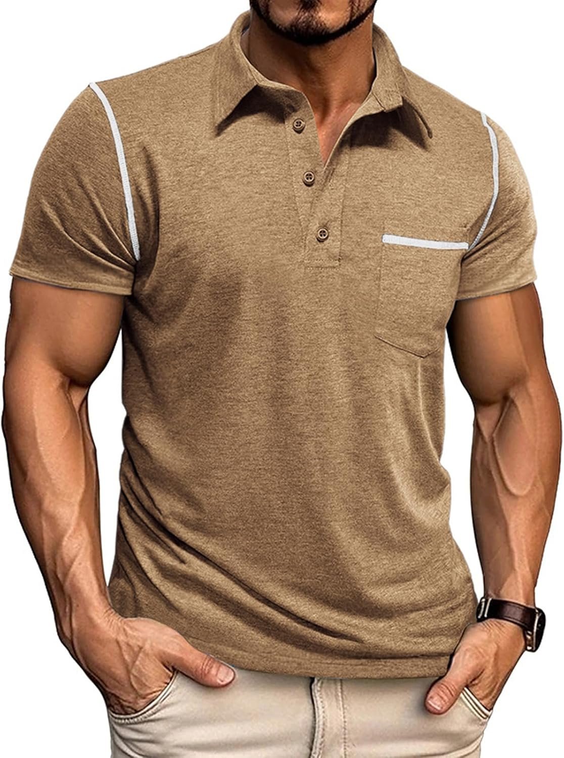 Mens Casual Polo Shirts Classic Short Sleeve Basic Golf Button Shirt with Pocket