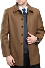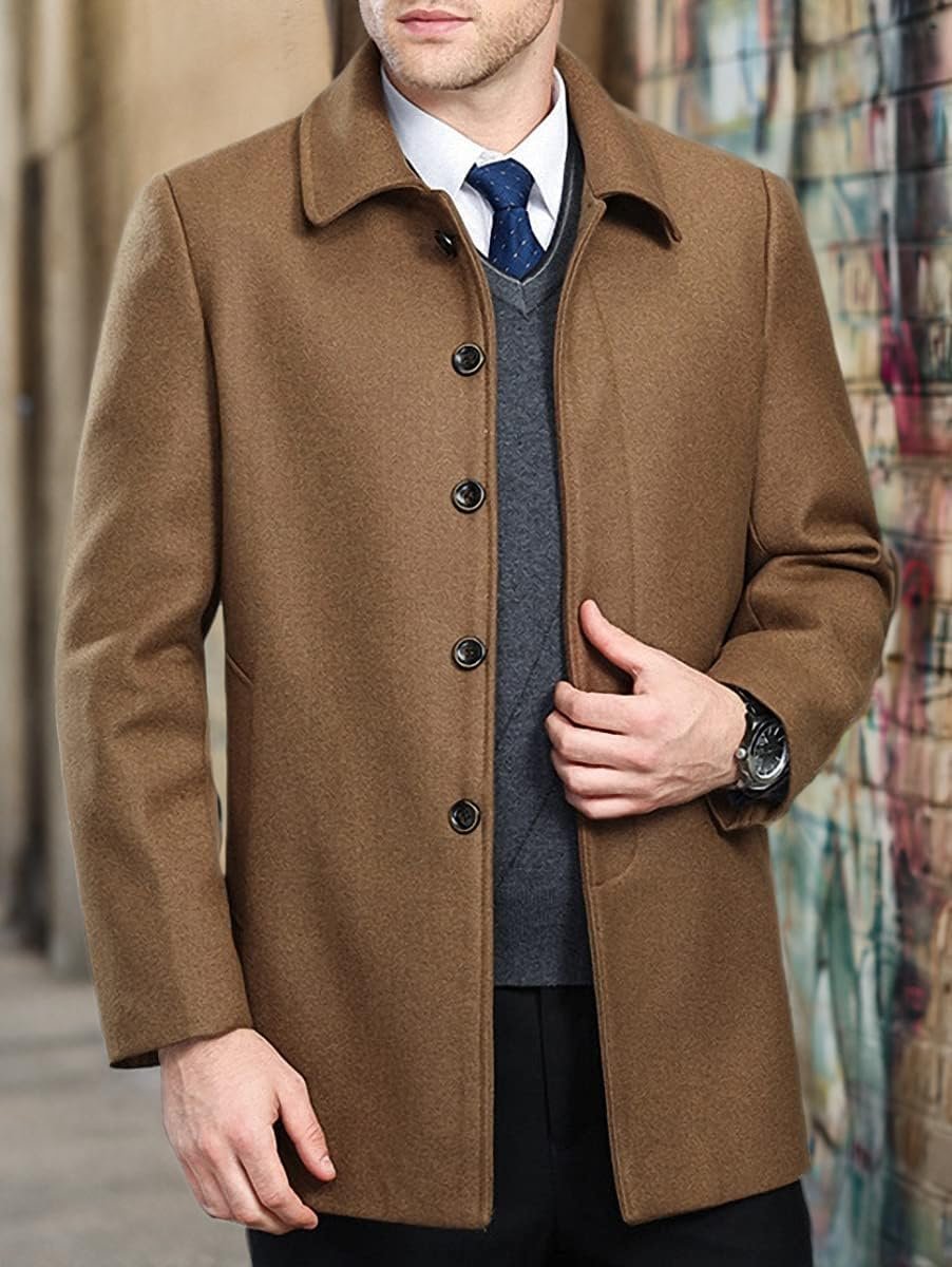 Men’s Classical Bussiness Style Single Breasted Plaid Wool Coat #00220237