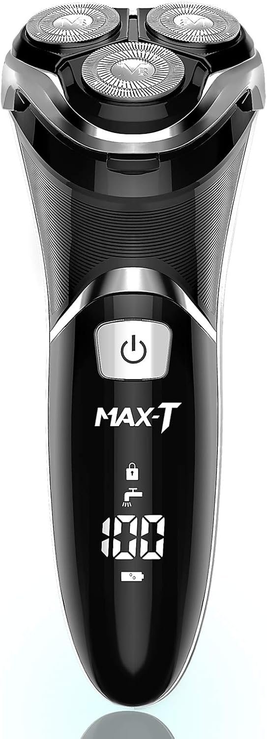 Men’s Electric Shaver – MAX-T Corded and Cordless Rechargeable 3D Rotary Shaver Razor for Men with Pop-up Sideburn Trimmer Wet and Dry with Wall Adapter 100-240V