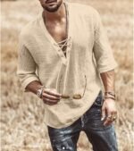 Be the first to review “Men’s Fashion Shirt Short Sleeve Beach V-Neck Drawstring Printing Yoga African Summer Top”