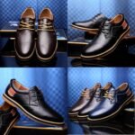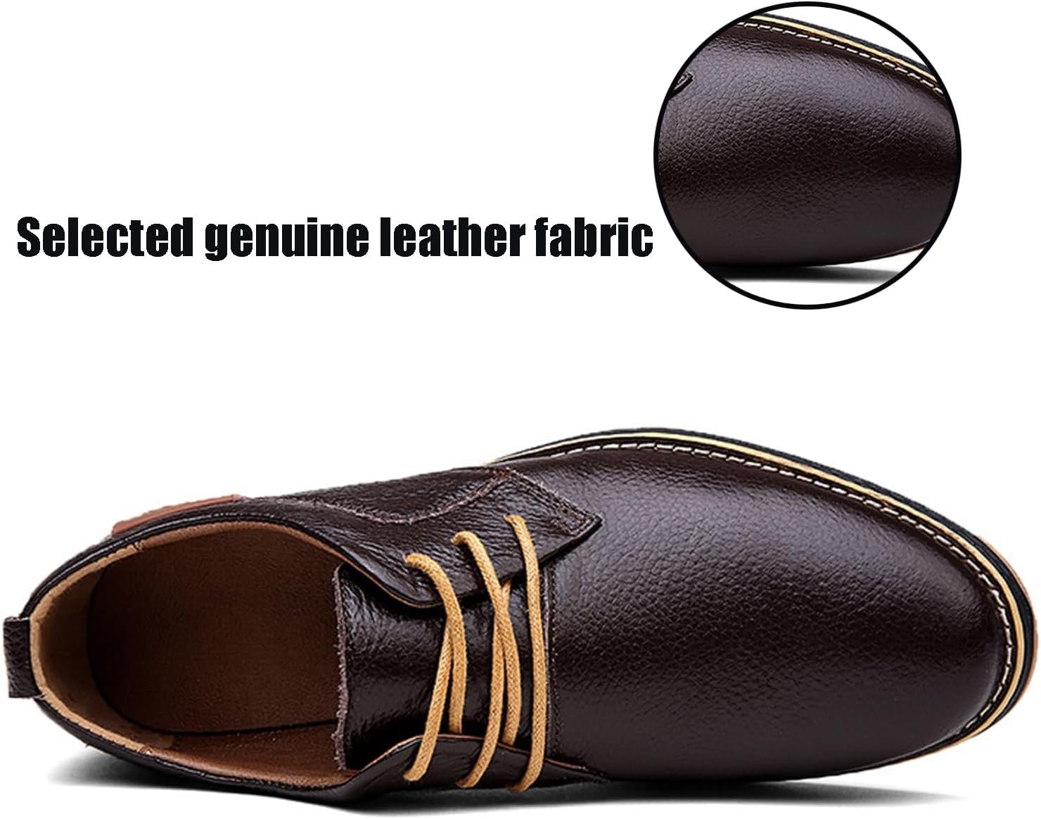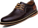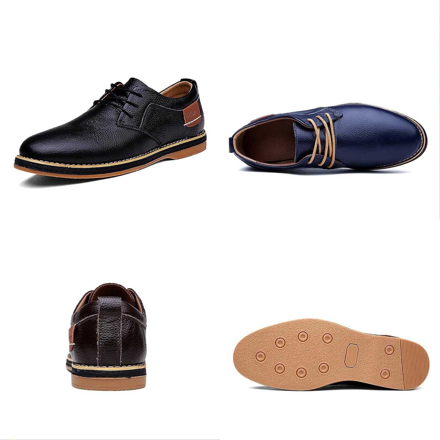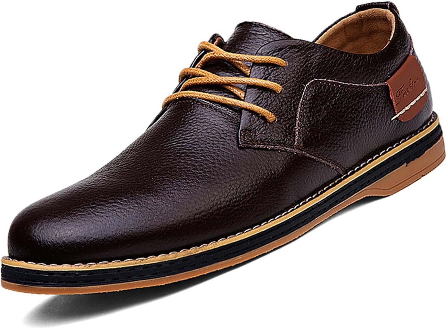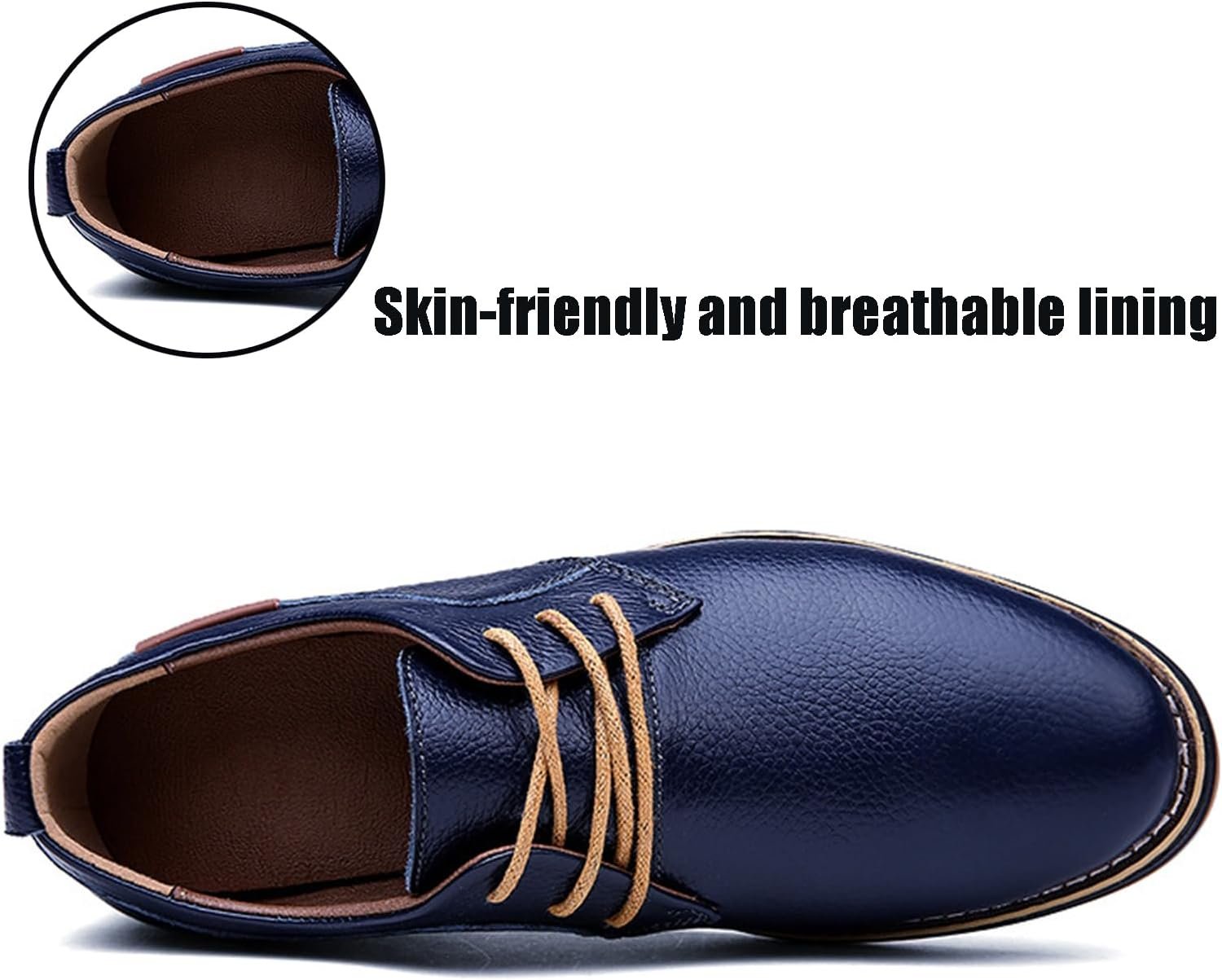 Men’s Genuine Leather Hand Stitched Dress Oxfords Fashion Plain Toe Lace up Low Top Formal Business Office Derby Shoes Daily Non-Slip Soft Sole Casual Shoes