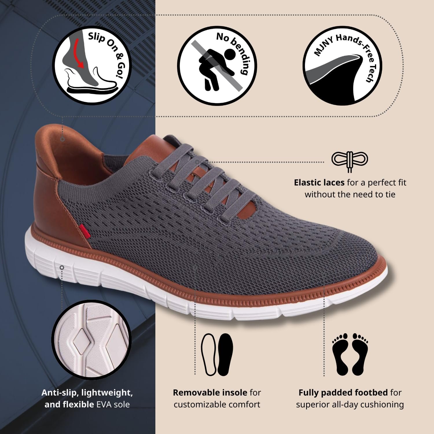 Mens Hands Free Slip On Casual Dress Sneakers Mesh Oxfords Comfortable Lightweight Breathable Walking Shoes