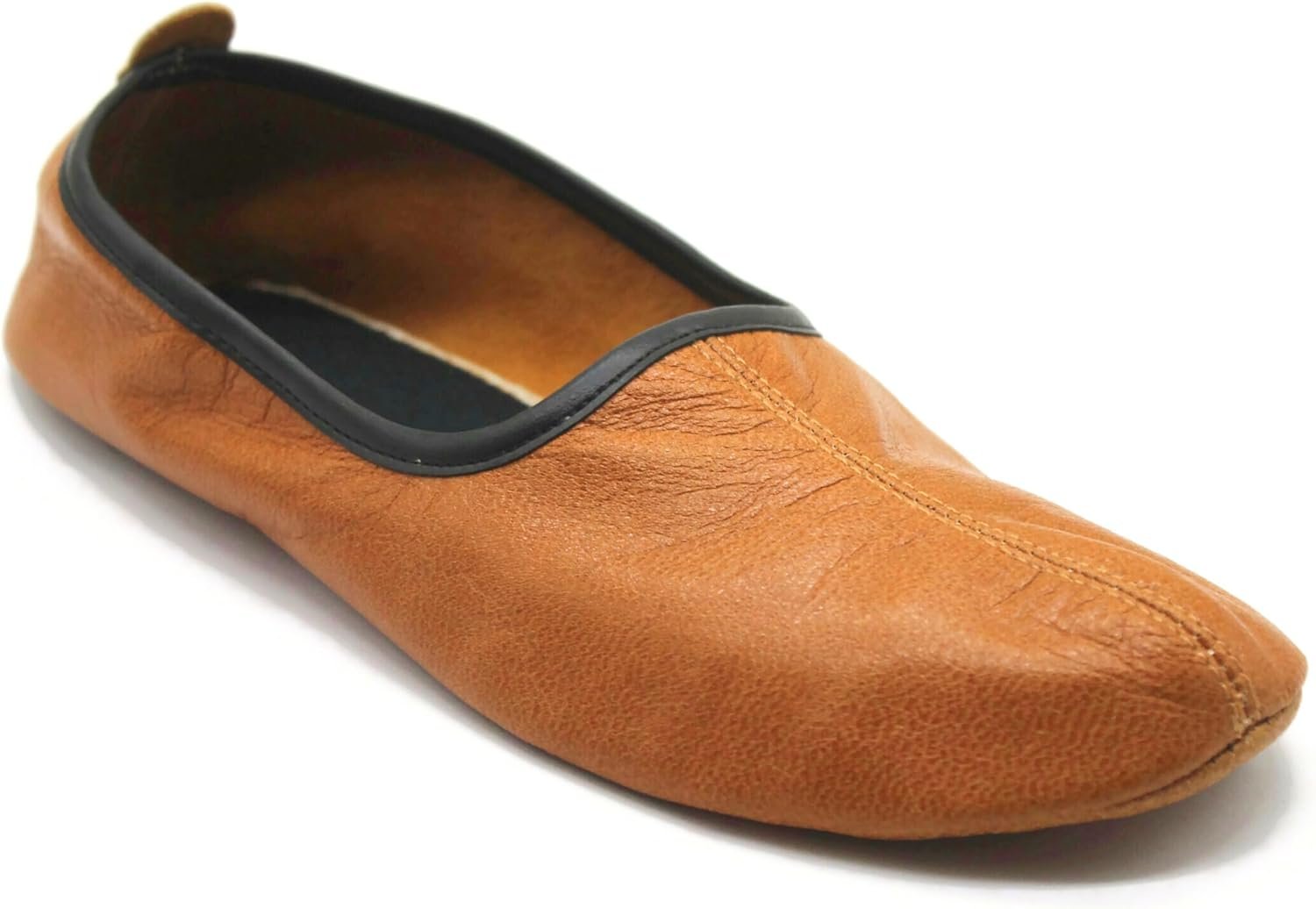 Mens Indoor Leather Slippers Antique Tan Traditional Babouche House Shoes Barefoot Moccasin