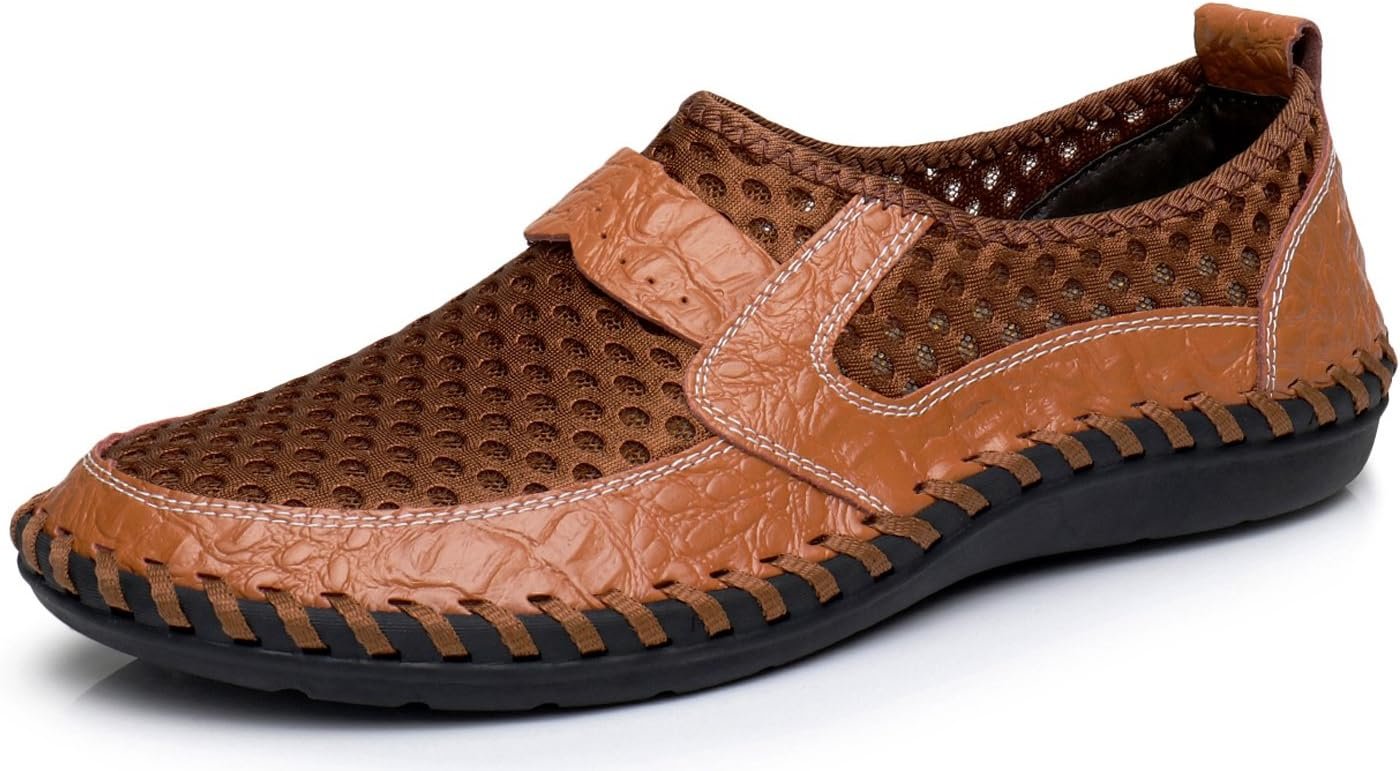 Men’s Mesh Breathable Walking Loafers Outdoor Lightweight Slip-on Mesh Casual Shoes Stitching Honeycomb Hiking Shoes