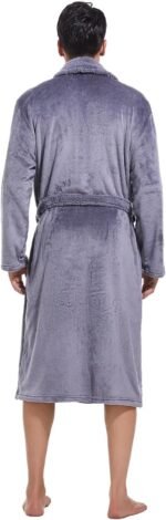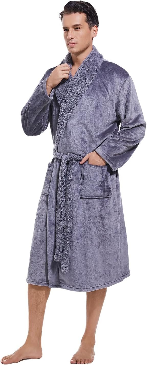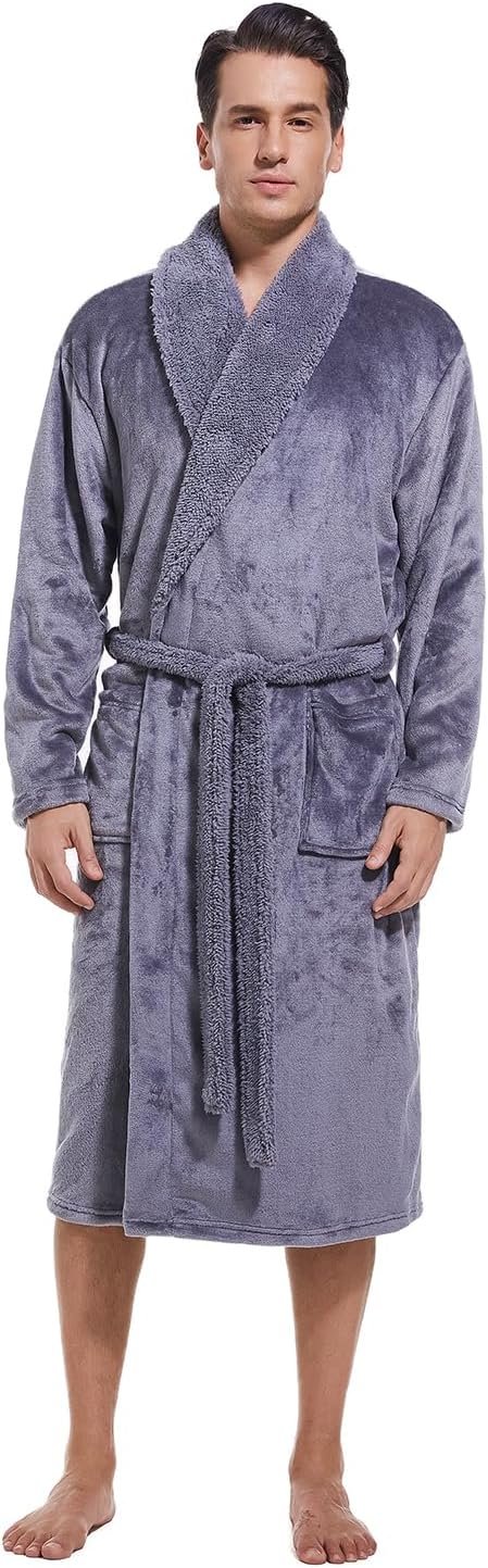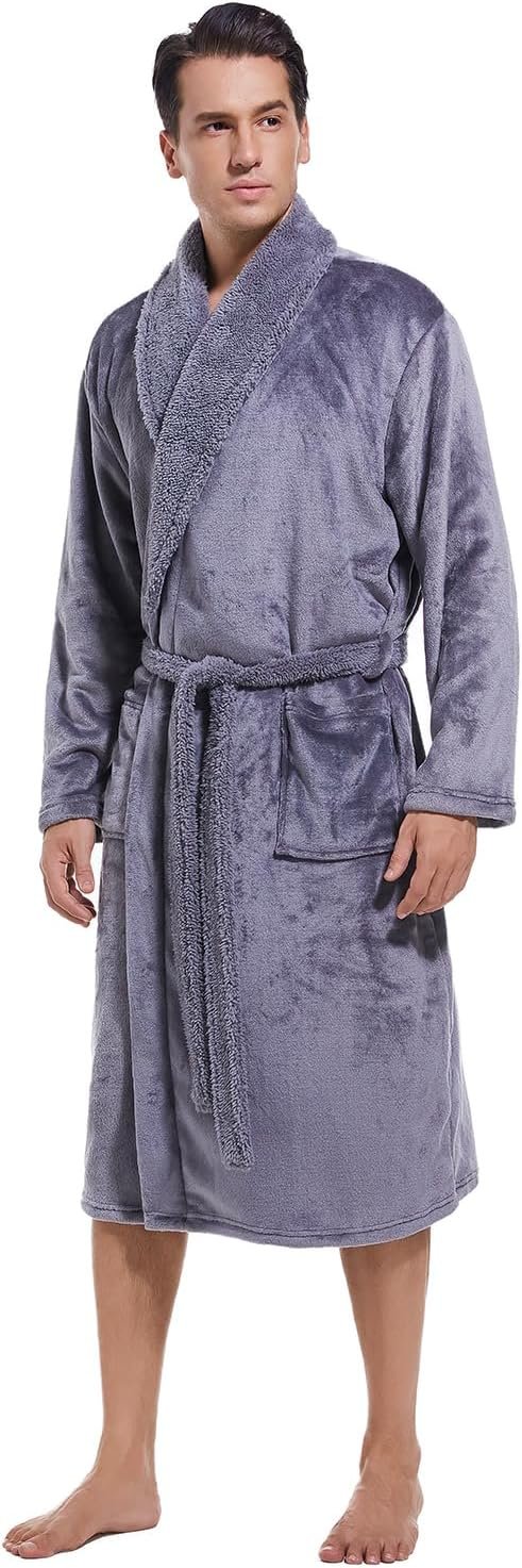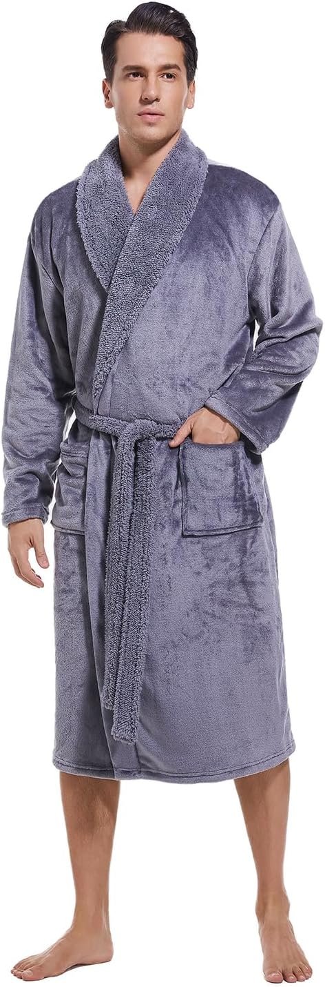 Men‘s Shawl Collar Fleece Robe,Soft Warm Long Bathrobe for men,Lightweight Spa Male Robe