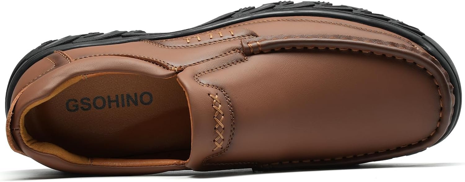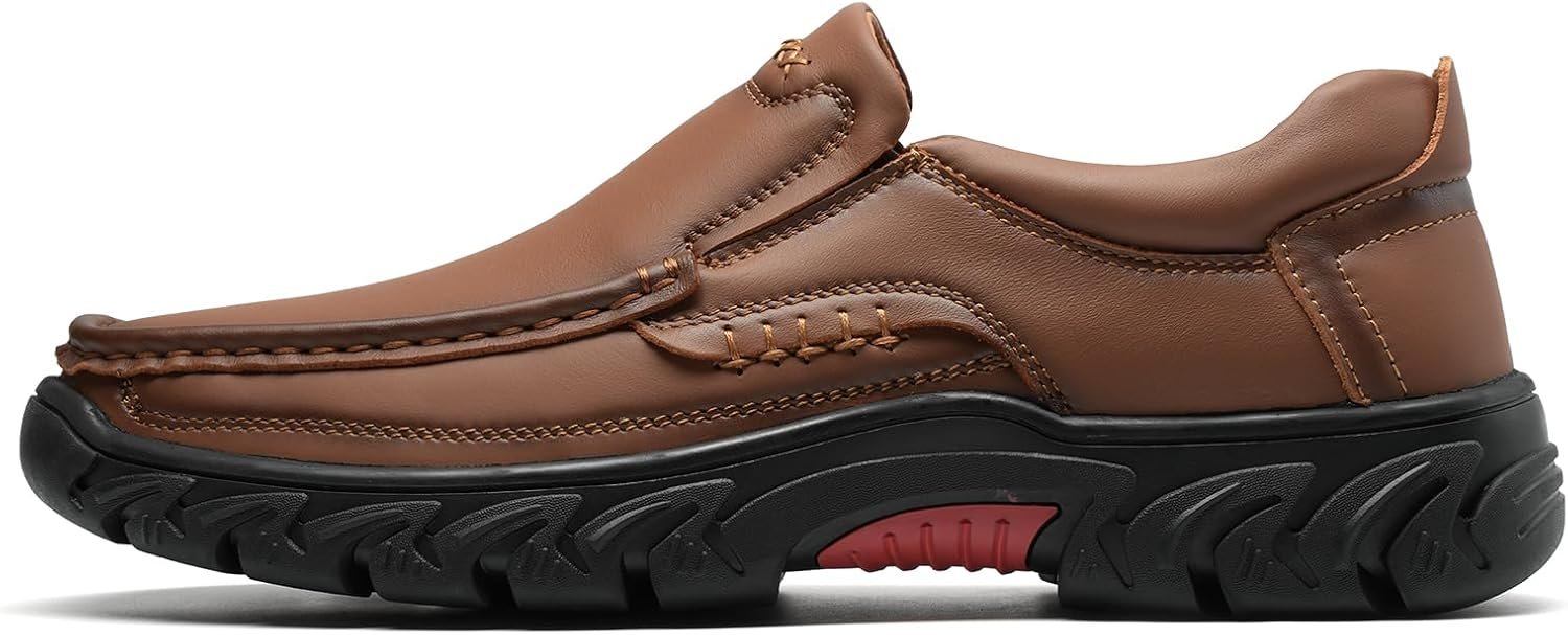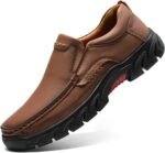 Mens Slip On Casual Loafers Classic Outdoor Leather Walking Hiking Dress Shoes Comfortable for Work Office Shoes