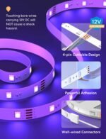 Voice and App Control: Smart light strips are compatible with Apple HomeKit / Alexa / Google Assistant / SmartThings, you can control them with simple voice commands. And you’ll feel more convenient to turn your smart led lights on/off, adjust brightness, or change the colors via Meross app or Home app