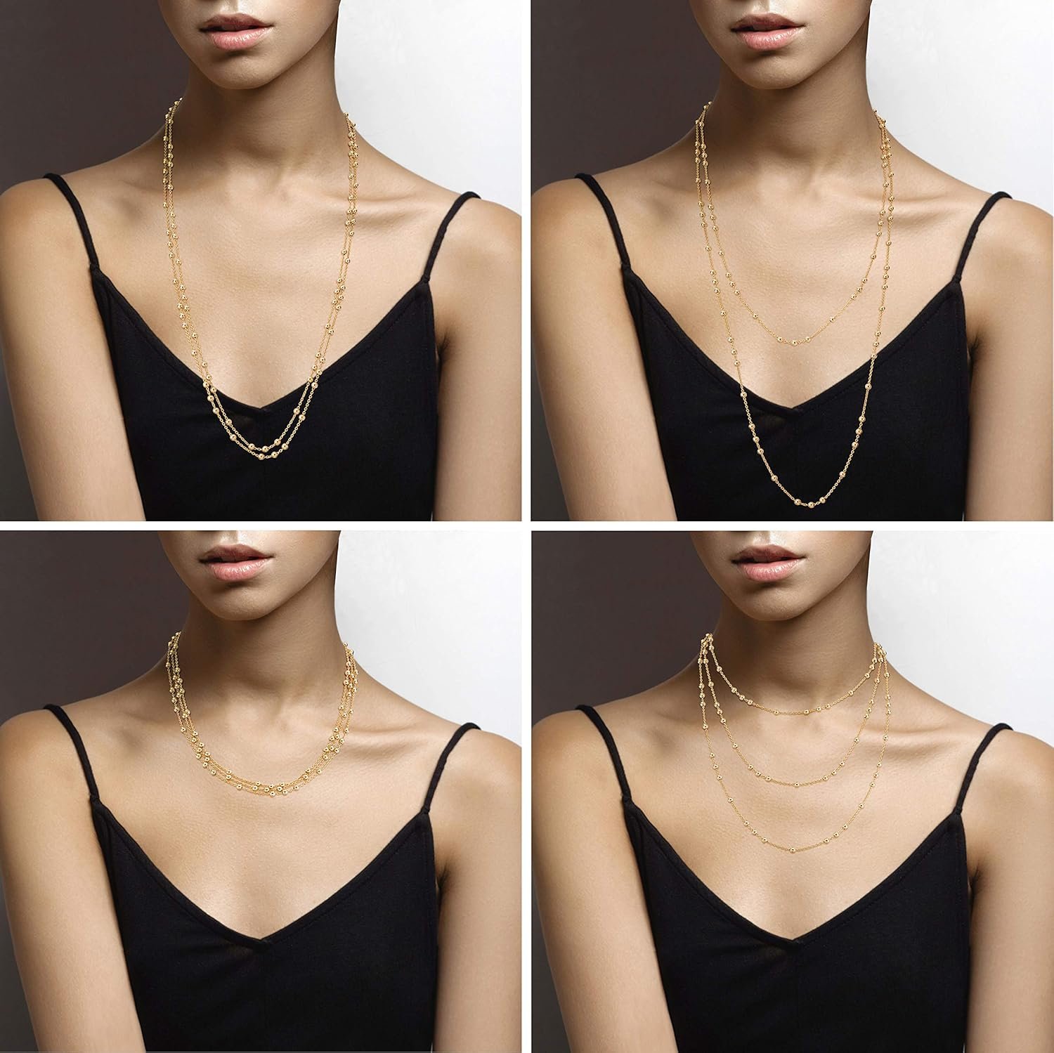 Wear this 18K gold plated extra long beaded necklace in 60” for a neutral and super chic effect or wrapped to adjustable lengths for an on-trend layered look. Wrap once for a 30” multi-strand or adjust to choker length and keep the other long for chic retro styling. Wrap it twice for a 20” multi-strand. This versatile chain is beautiful with a casual t-shirt, sweater or dressy outfit and simply transforms from a timeless classic to cool modern elegance.