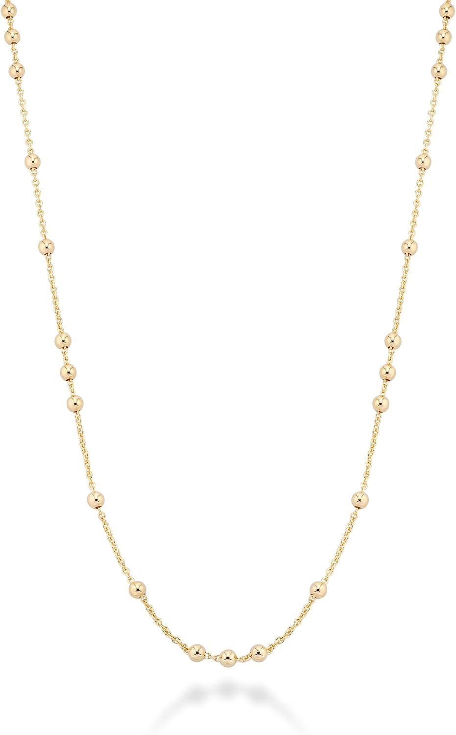 The benefit of choosing Miabella jewelry is its unprecedented quality and timeless designs. Fashion jewelry is typically made of materials such as brass, copper, plastic, etc that can cause skin irritations. Our beaded necklace is made from bronze and pure 18k gold plating that is hypoallergenic, nickel-free, lead-free, and won’t cause irritation, making it a great choice for those with sensitive skin.