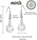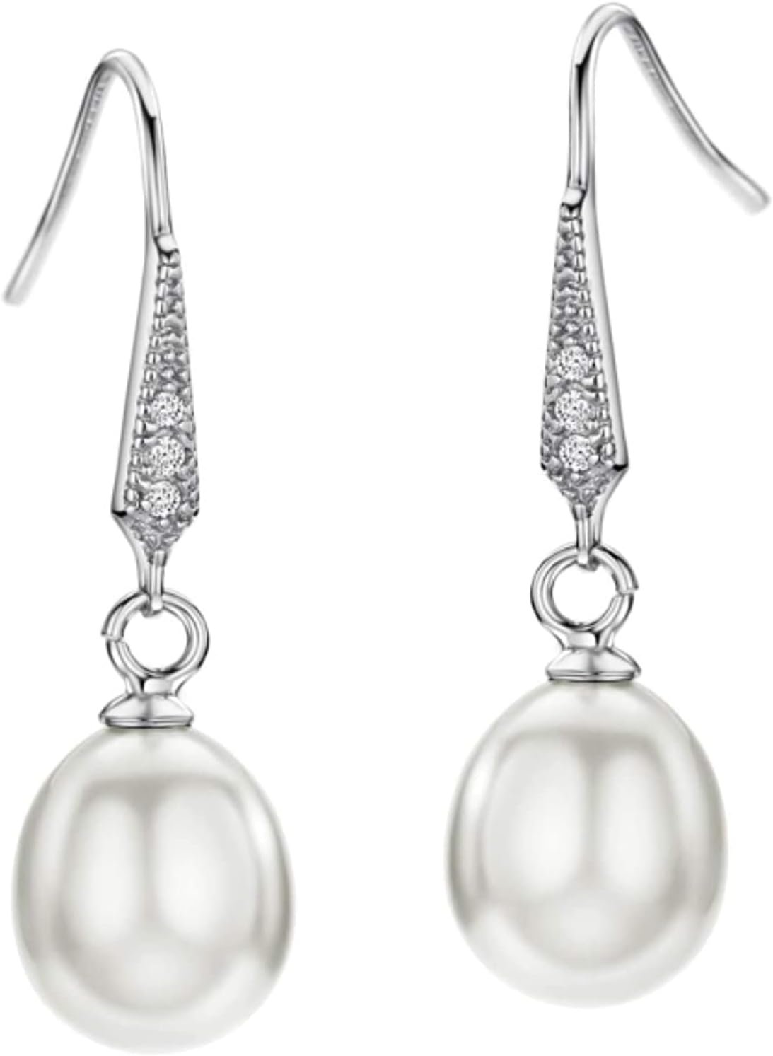 Michooyel 925 Sterling Silver Freshwater Cultured Pearl Dangle Drop Earrings for Women AAA+ Quality 8mm White Pearl Earrings Jewelry for Women