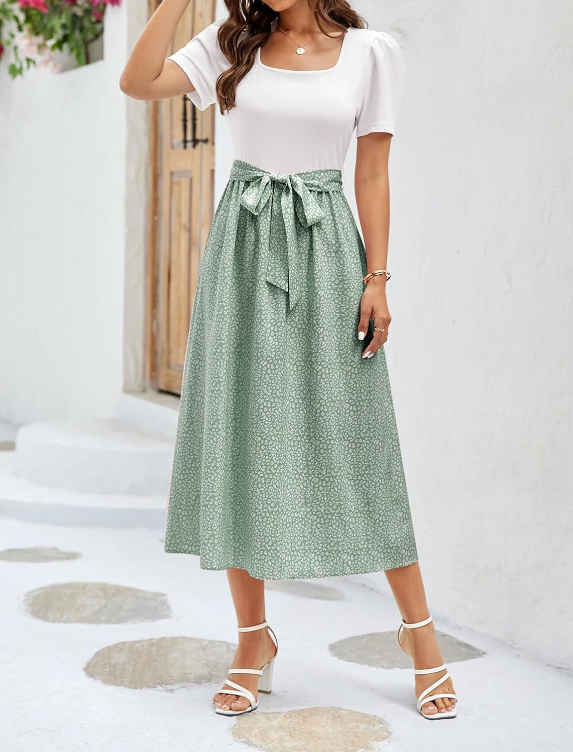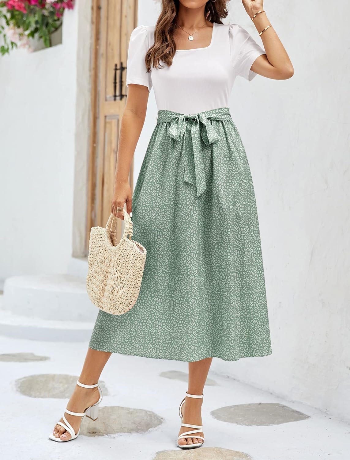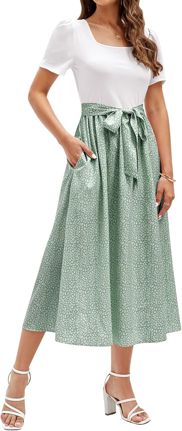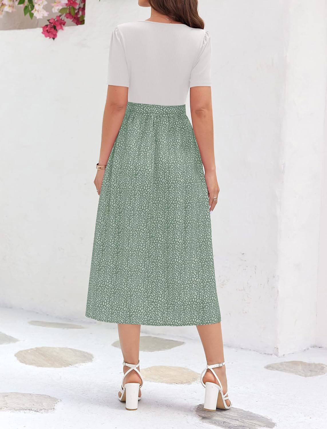 Miladusa Women 2025 Summer Dress Square Neck Short Sleeve Midi Dresses Outfits with Pockets