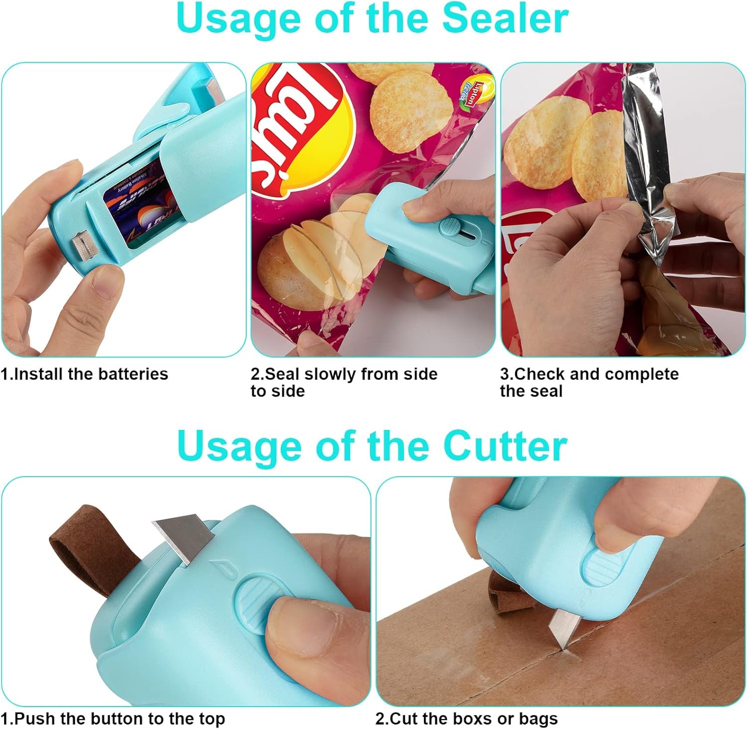 Mini Kenossion Chip Bag Sealer – Heat Seal with Cutter & Magnet, Portable Mini Sealing Machine to Reseal Plastic Bags & Keep Snacks Fresh (2xAA Batteries Included)