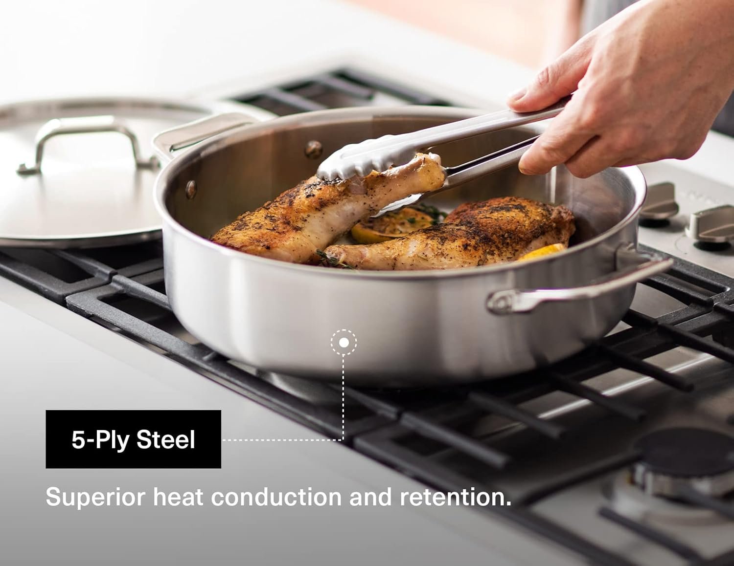 5-Ply Steel: A 3.0 mm thick, 5-layer composite of stainless steel and aluminum provides the brazier with superior heat conduction & retention. Please note a lid is included.