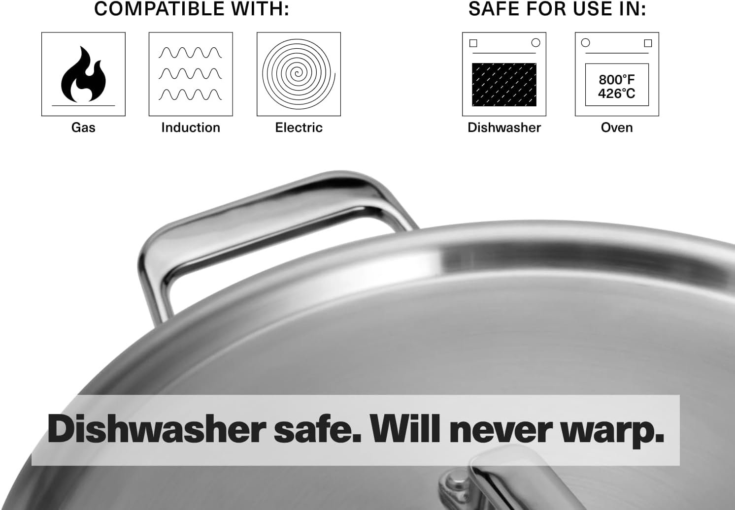Cookware For A Lifetime: Strong riveted construction and 3.0mm 5 ply steel make our stainless steel cookware highly durable for a lifetime of cooking. All Misen stainless cookware is compatible with gas, electric and induction cooktops.