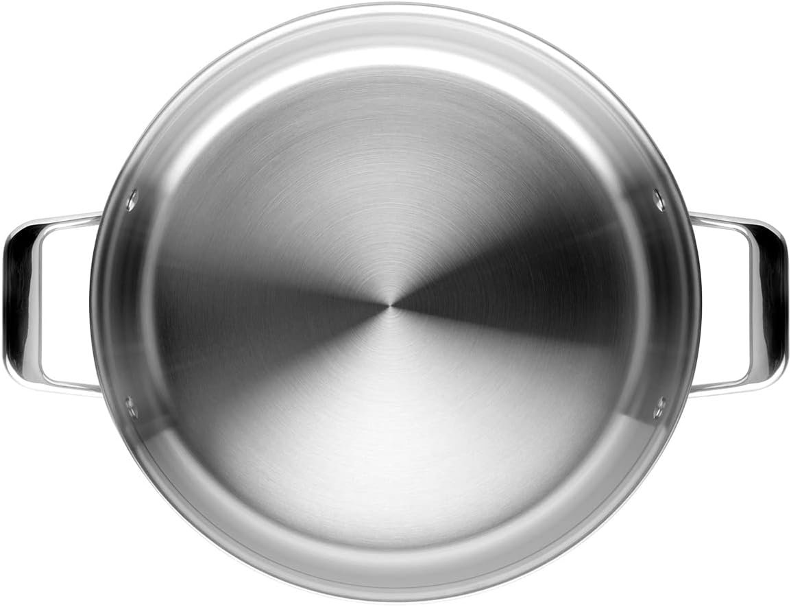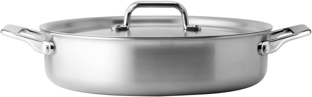 Misen 5-Ply Stainless Steel 6QT Rondeau – Wide, Flat Cooking Surface – Even Heating, Perfect Searing – Durable, Versatile Cookware – Oven-Safe to 800F, Induction Compatible
