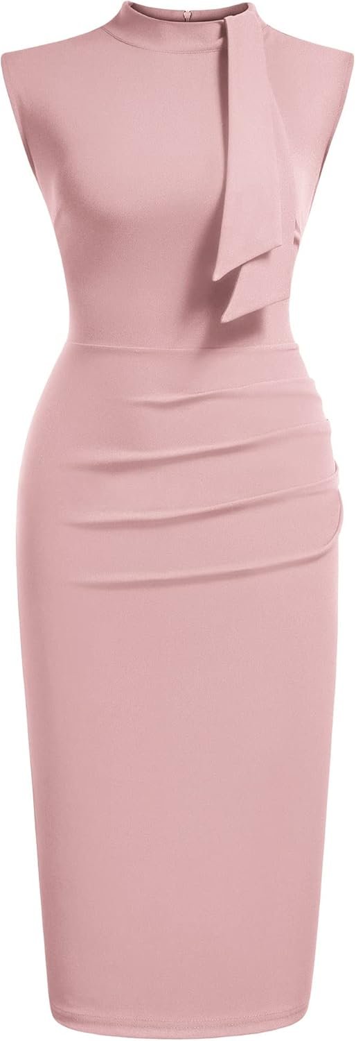 Customers find this dress flattering, with one mentioning it went perfectly with a black blazer, and many appreciating its versatility for both work and evening events. The dress receives positive feedback for its material quality, with customers noting its good thickness and durability, while also being comfortable and hugging the body nicely. Customers consider it good value for money, with one noting it’s suitable for spring wear, and they like its color accuracy.