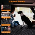 【Upgraded Anti-slip Design】- I’m sure you’ve been in this situation that the dog cargo liner is too slippery on the cargo that the dog just slides around during turns. Plus, dog ends up on the carpet, therefore dangerous for our dog! 2-extra adhesive straps on the bottom is another point that I want to suggest you guys to get this suv cargo liner! Ensures the pet trunk liner dog position is secured to prevent your pet from getting hurt in the event of sudden braking.