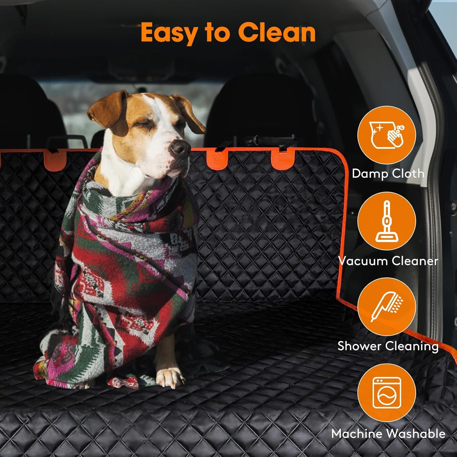 【Water Resistant& Keep Clean】- MIXJOY cargo liner for dogs has 4 layers of waterproof fabric and upgraded stitching technology to protect your car from pet dander, hair, excrement, mud, odors and water. This also has a nice addition – Very easy to clean with a damp cloth, vacuum, water shower or machine.