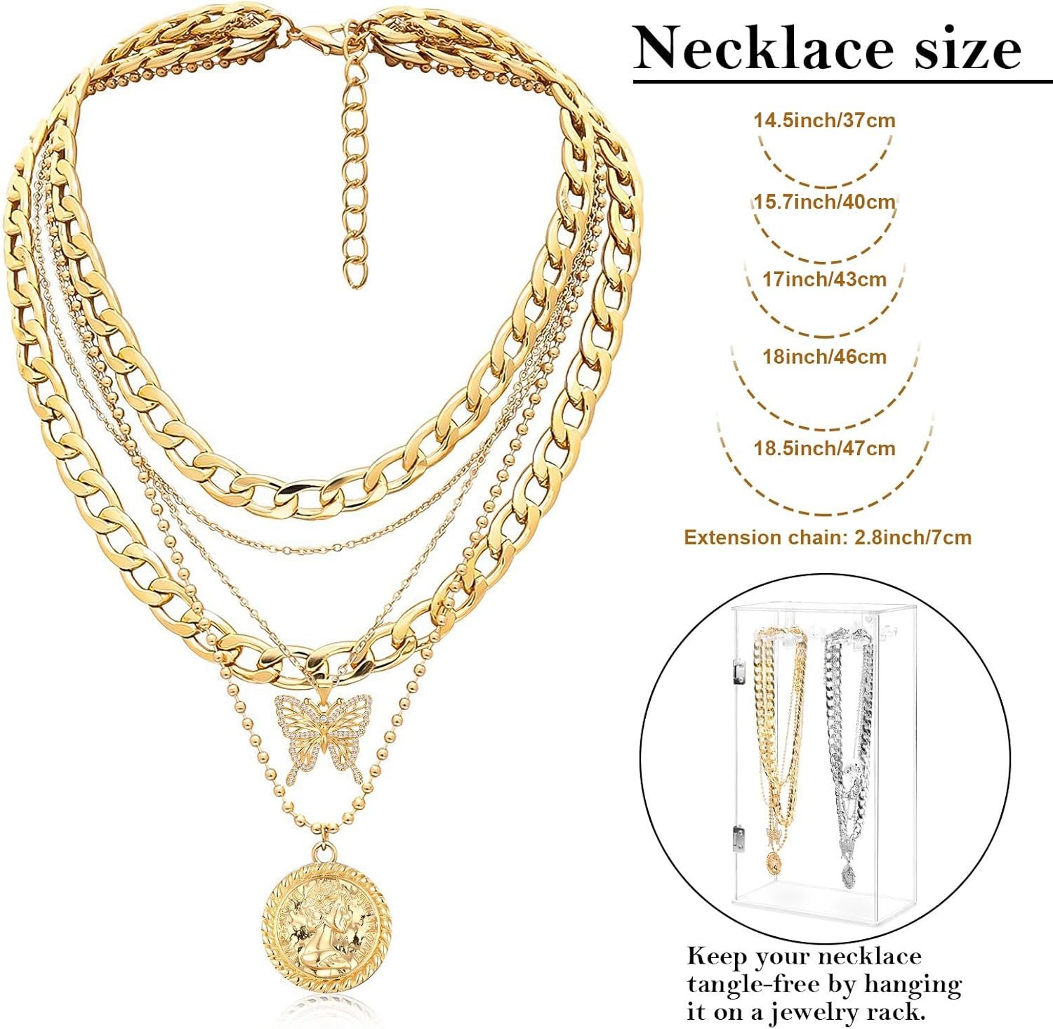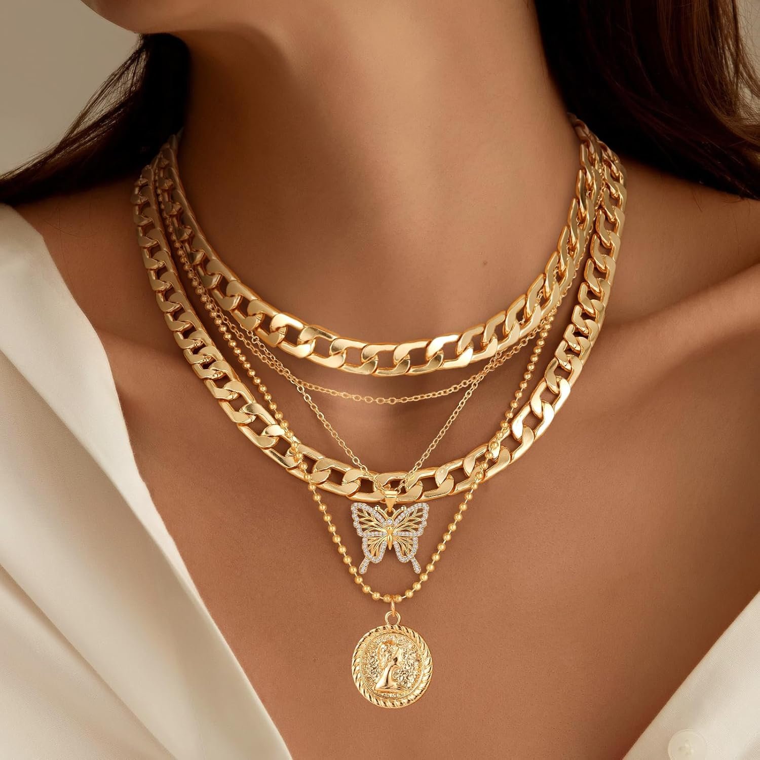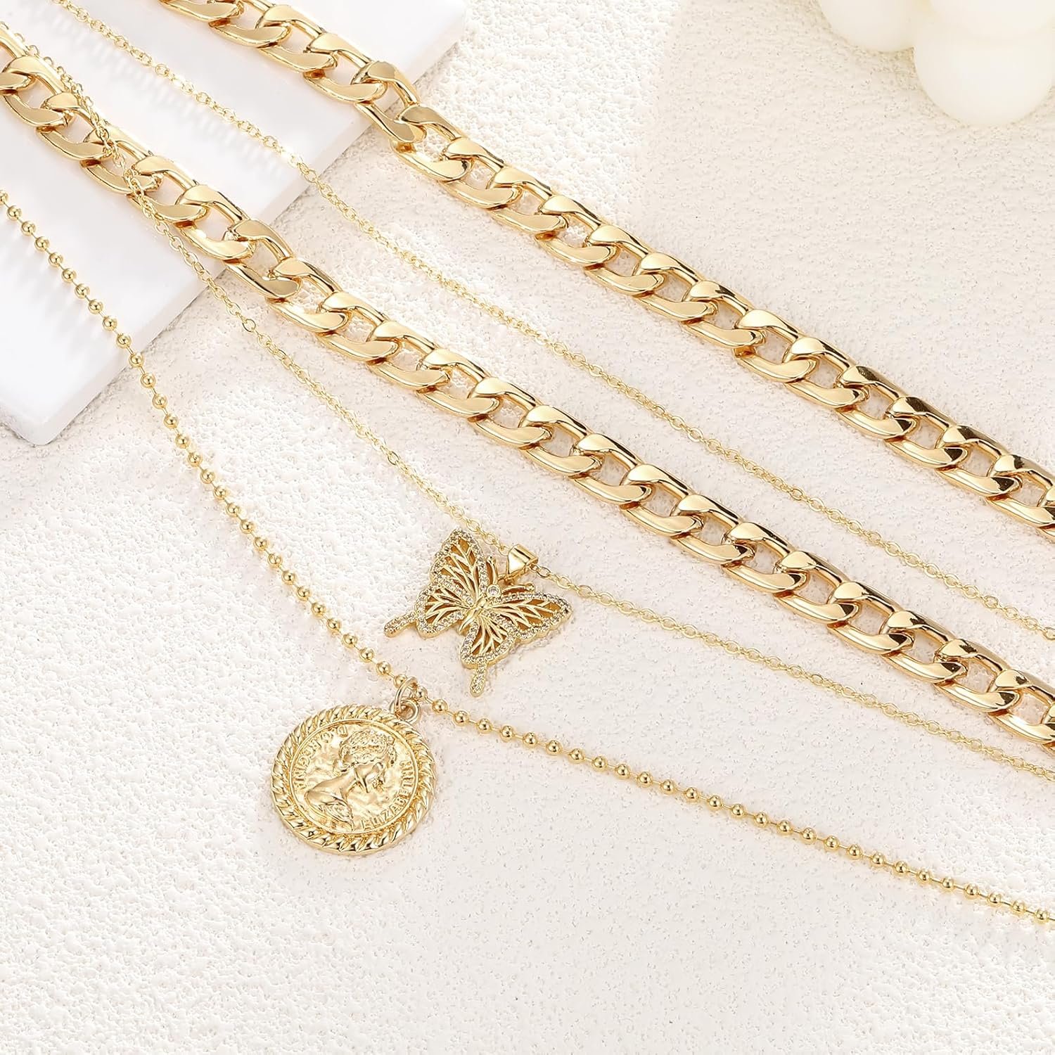 MJartoria Gold Layered Necklaces for Women Trendy Retro Coin Pendant Necklace Dainty Chunky Chain Choker Necklaces for Jewelry Birthday Gifts