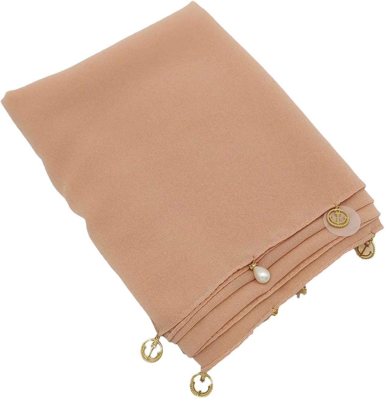 Mkjuuior Women Shawl Pearl Chiffon Tassel Abaya Arab Islamic Women Kaftan scarf