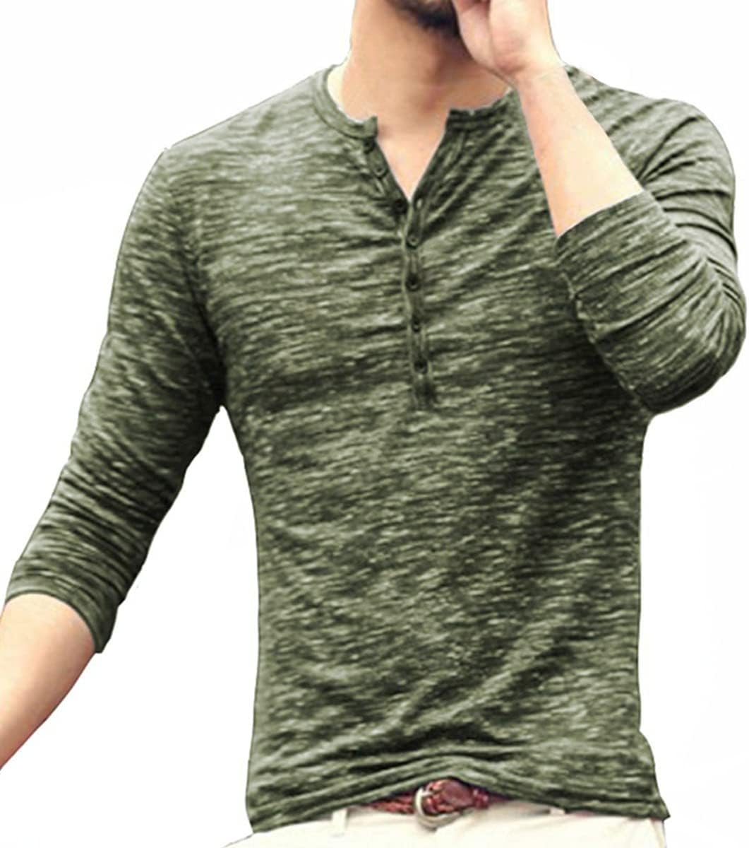 MLANM Mens Casual Slim Fit Basic Henley Short/Long Sleeve Fashion T-Shirt