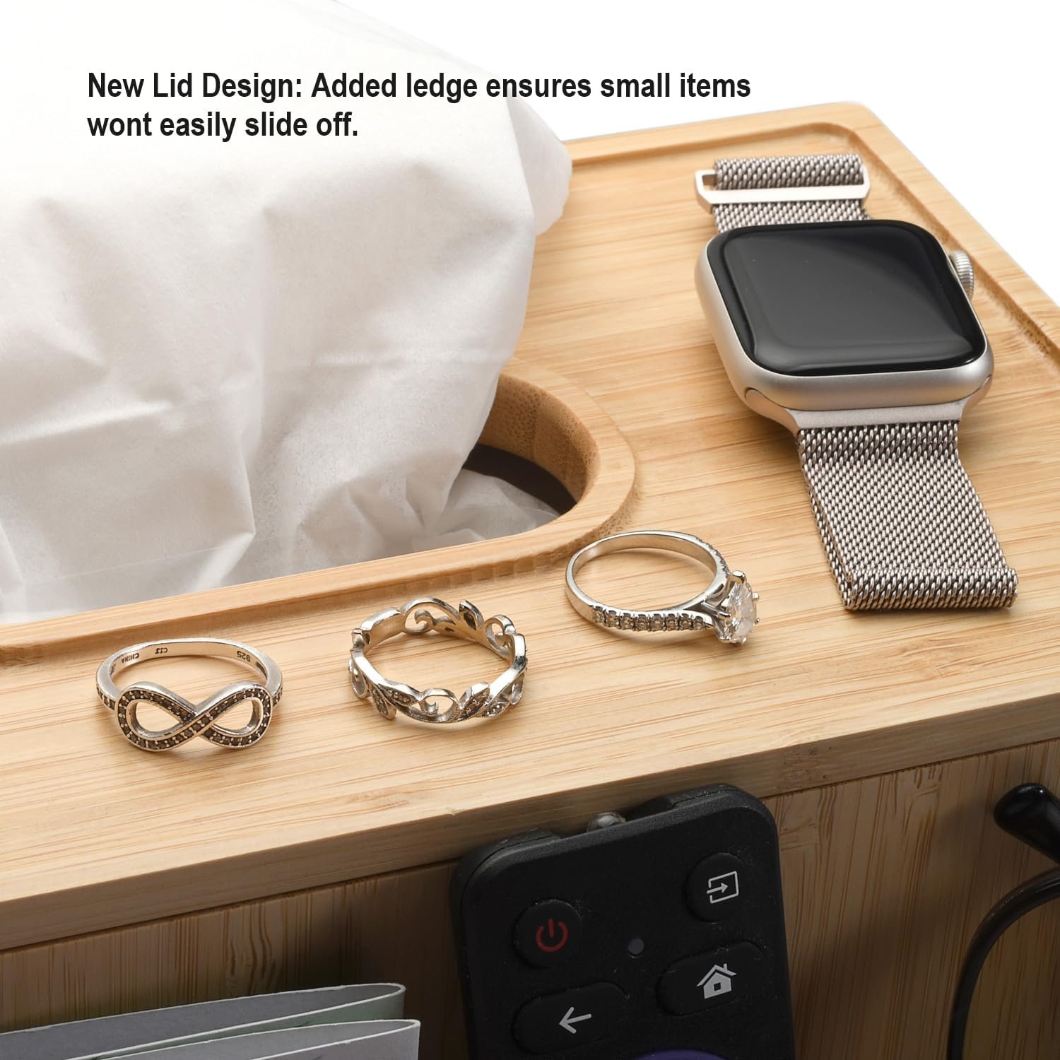 Be the first to review “MobileVision Bamboo Tissue Box Holder & Tablet Stand Organizer for Bedroom & Desktop; compartments hold iPad Phones Remote Controls Reading Glasses Notepads & Pens”