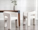 FEATURE: The kitchen chair is covered top to bottom in rich boucle fabric, so it’s super soft to the touch and elegant to the eye