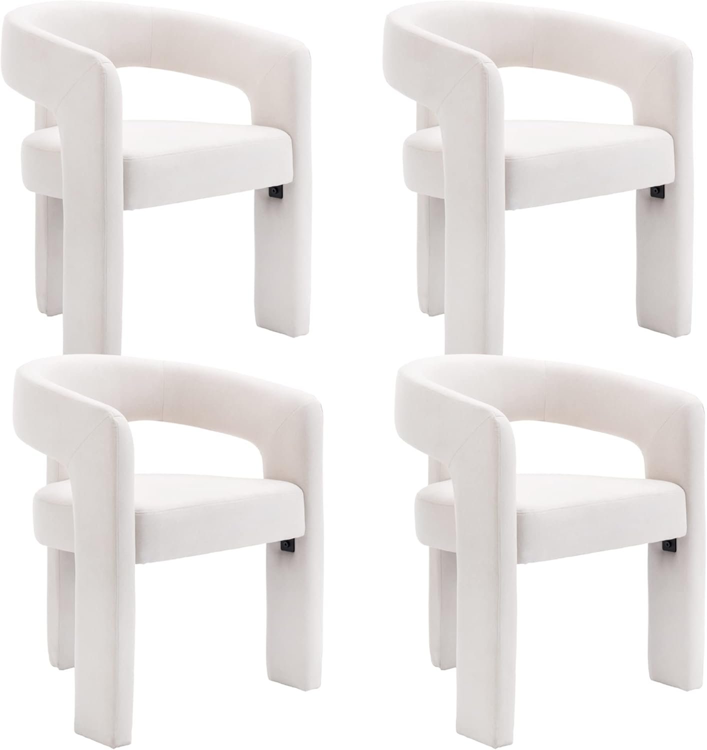 Modern Barrel Kitchen & Dining Room Chairs Set of 4, Linen Upholstered Accent Chairs with Arm, 18.5” Wide Side Armchair Vanity Chairs for Living Room Bedroom Makeup Small Spaces, Ivory