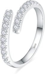 Moissanite Wedding Band Adjustable Open Twist for Women,D Color VVS1 Round Cut Diamond Eternity Ring S925 Sterling Silver with 18K White Gold Plated Stackable Gemstone Jewelry