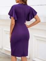 Women’s Elegant Trendy Ruffle Sleeve Formal Party Cocktail Pencil Midi Dress