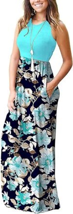 Women Summer Casual Long Maxi Dress with Pockets Beach Vacation Travel Outfits