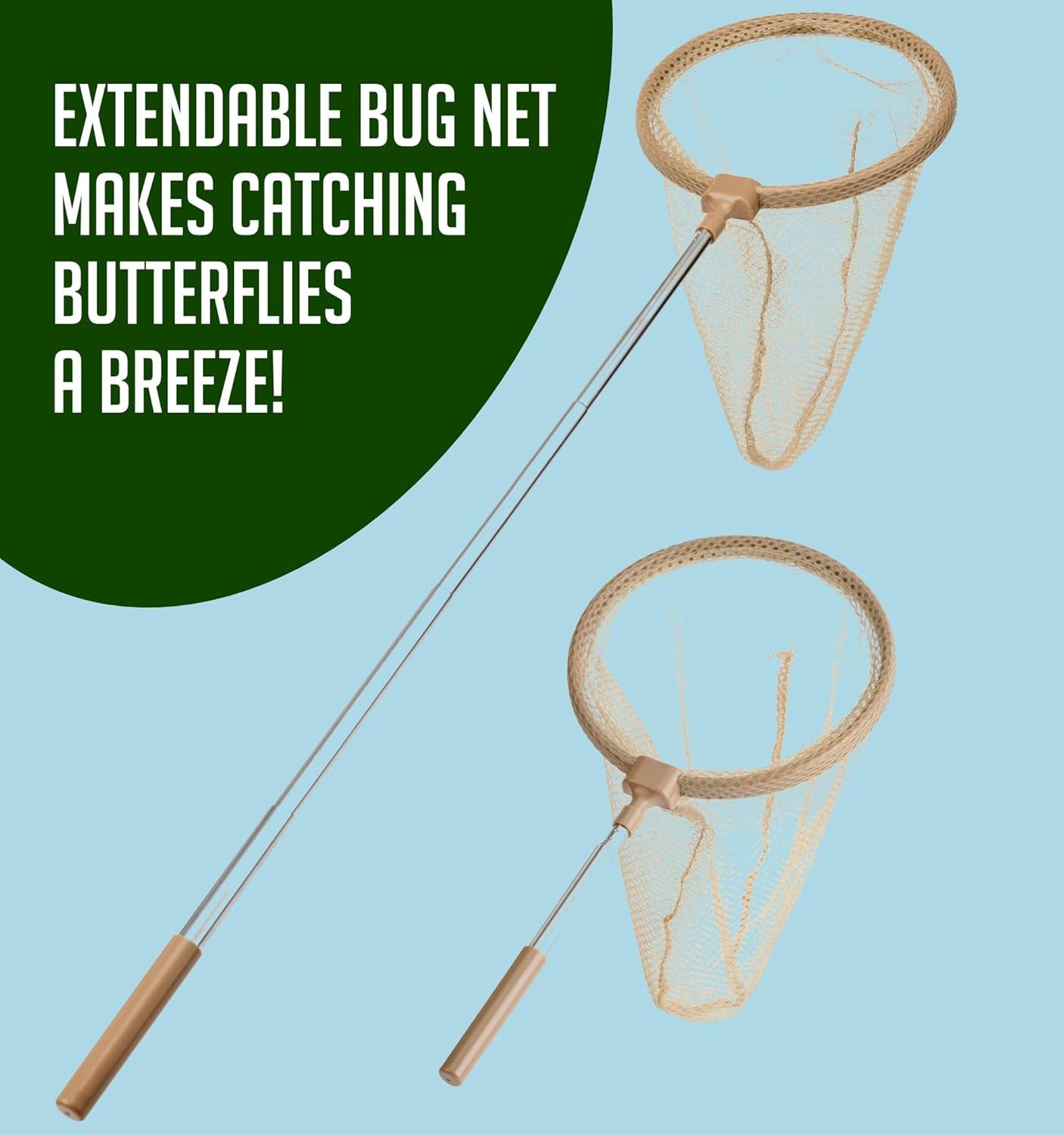 Metal constructed, telescoping bug net makes catching flying insects and especially butterflies a breeze!