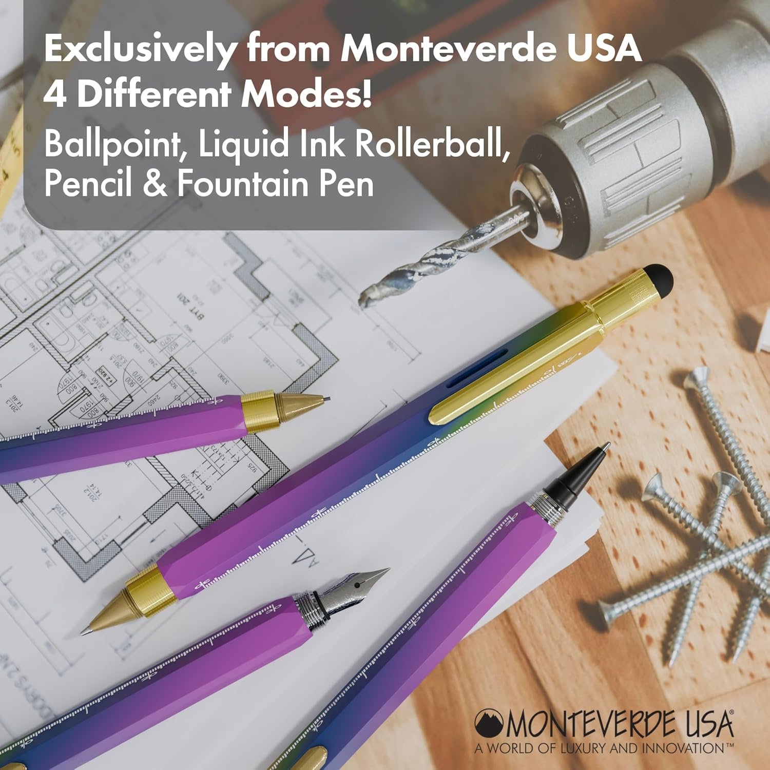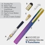 MONTEVERDE USA 9-in-1 Tool Fountain Pen in Rainbow – Broad Nib, PVD-Coated Multifunctional Pen with Stylus, Screwdrivers, Level, and Ruler – Exclusive Collection, Ideal Gift for Creatives