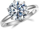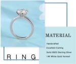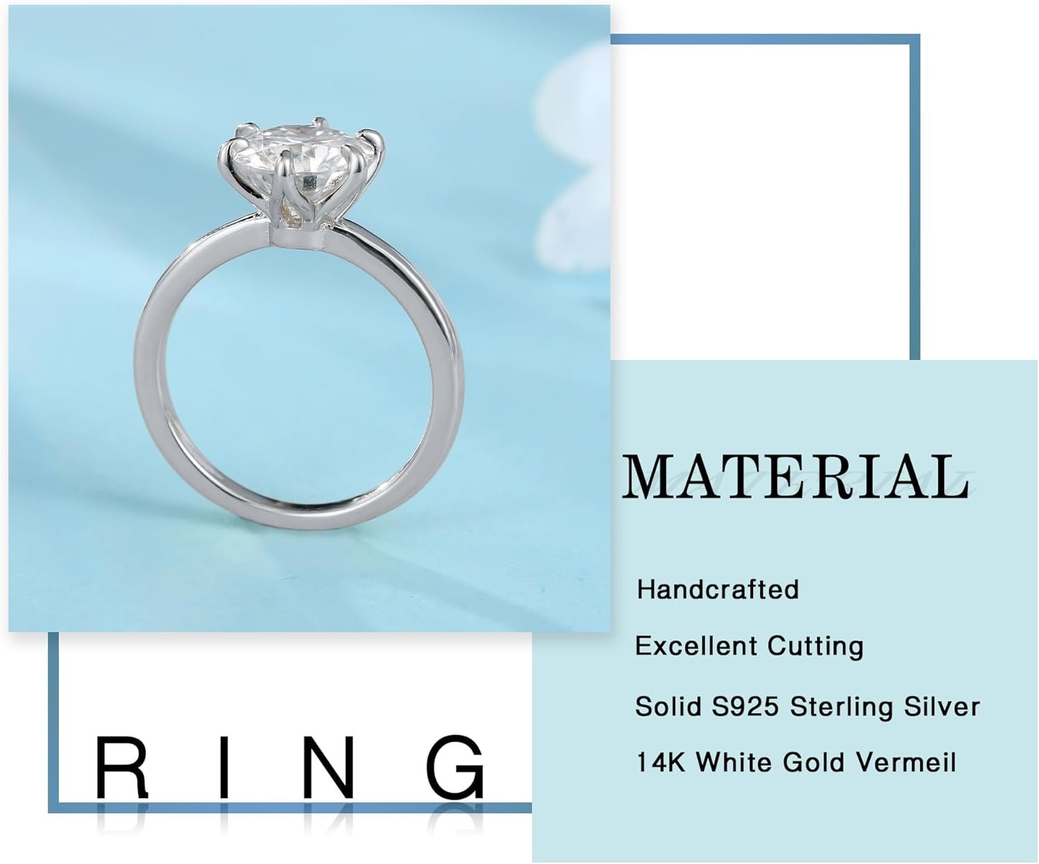 MOOSEA 3ct Moissanite Engagement Ring for Women – 14K White Gold Vermeil 6 Claw Round Solitaire Wedding Promise Ring