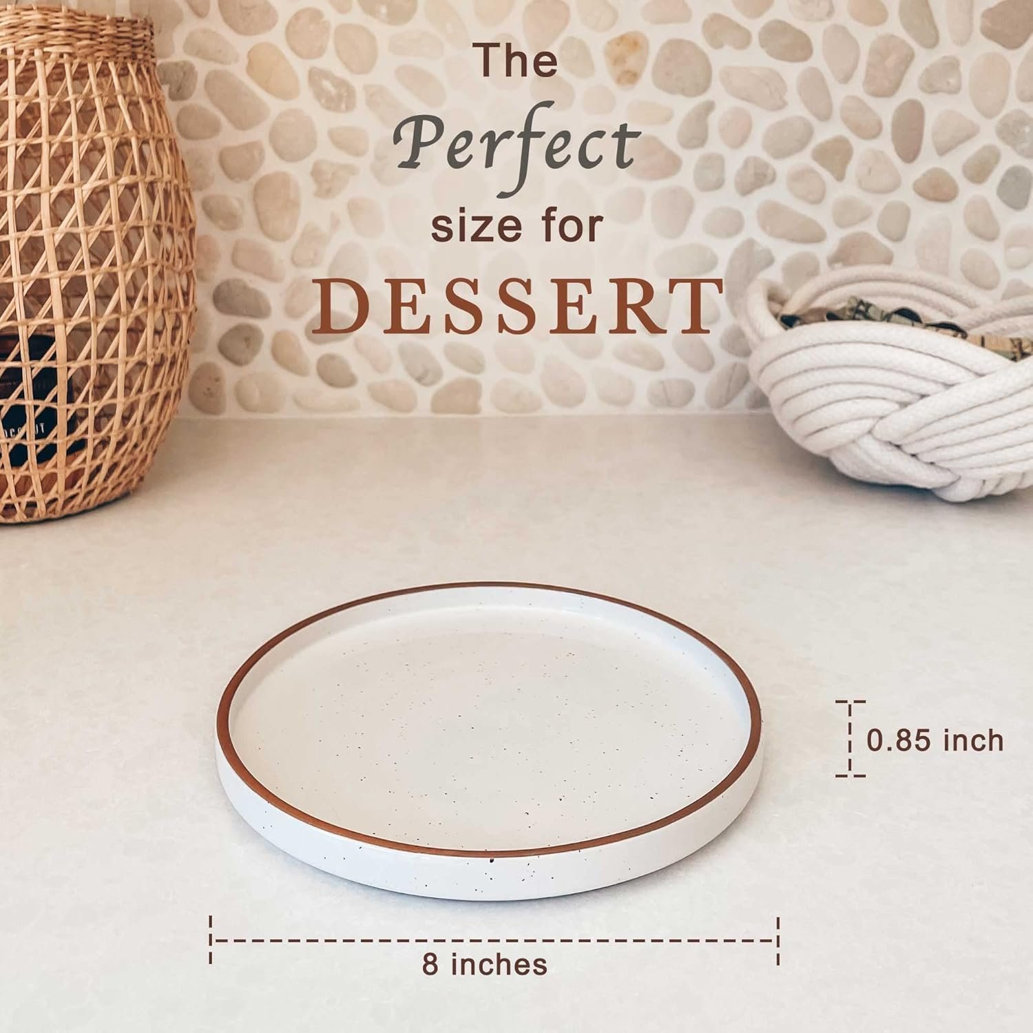 Mora Ceramic Flat Plates Set of 6-8 in – The Dessert, Salad, Appetizer, Small Lunch, etc Plate. Microwave, Oven, and Dishwasher Safe, Scratch Resistant. Kitchen Porcelain Dish – Vanilla White