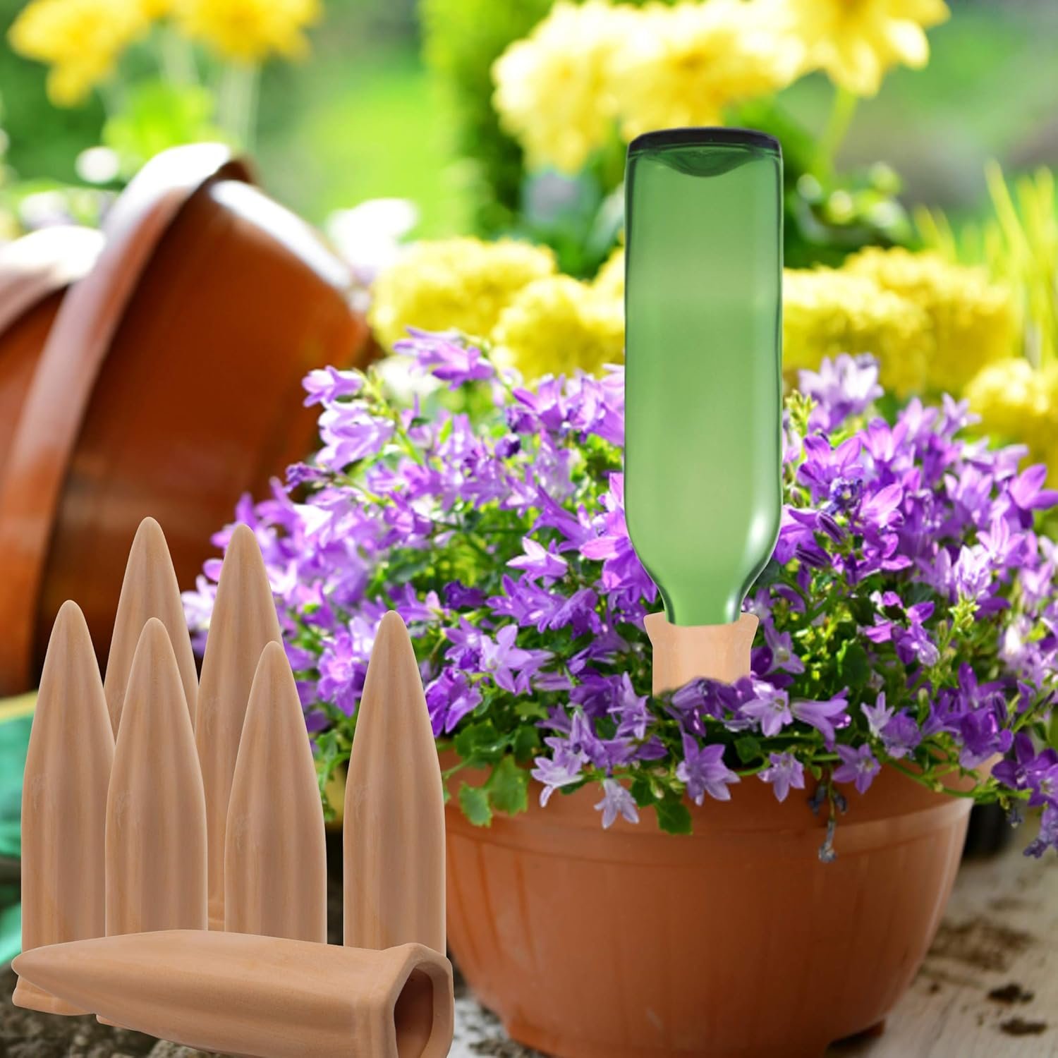 The package includes 6 watering stakes. You could choose used wine bottle or long neck plastic bottle to be compatible with the stakes. The watering spikes are perfect tool for you to recycle the used bottle as well as free up labor.