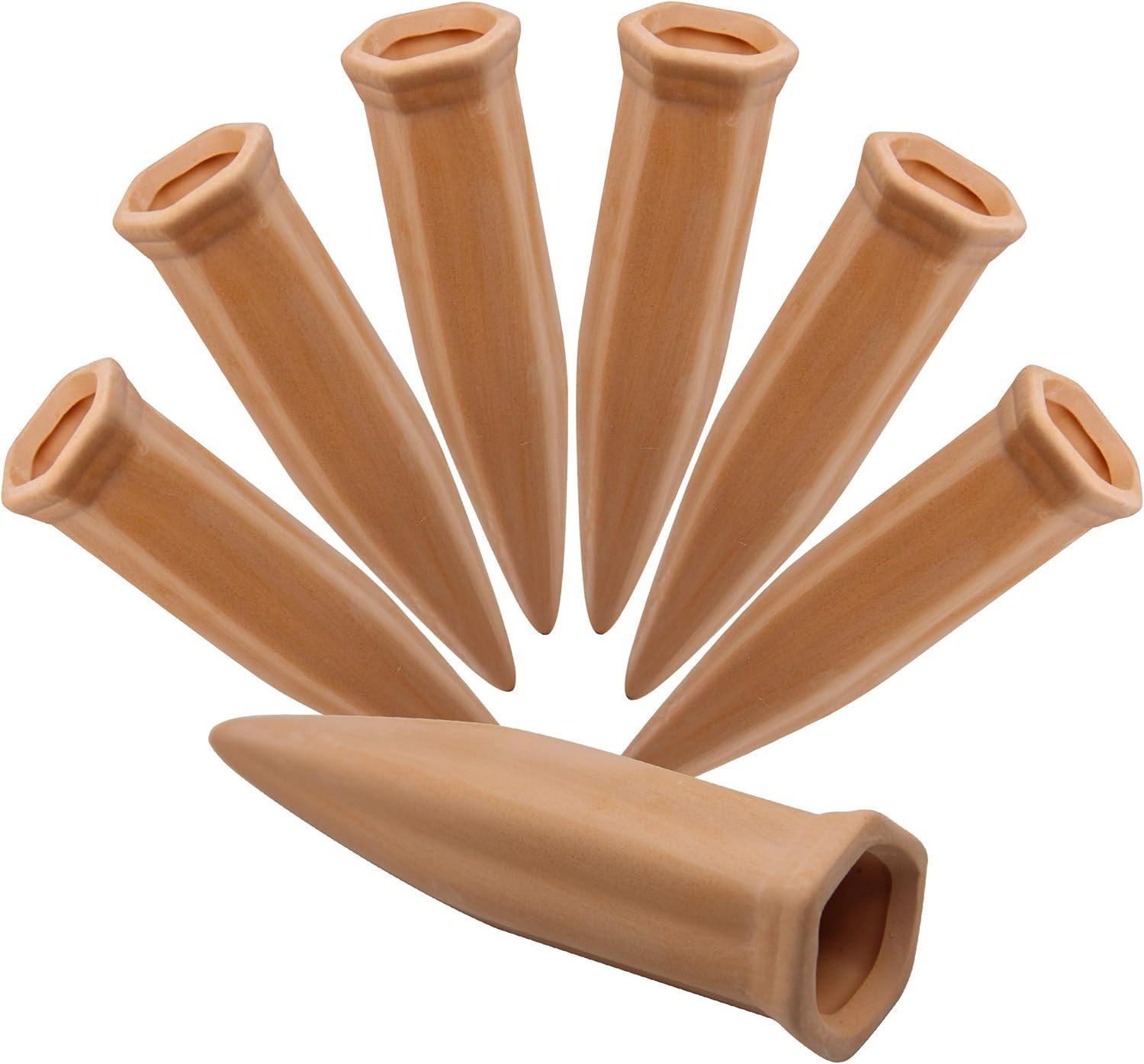 Slow Release Water Automatically: The terracotta watering spikes will release water automatically. Thinner the spikes, faster the draining speed.