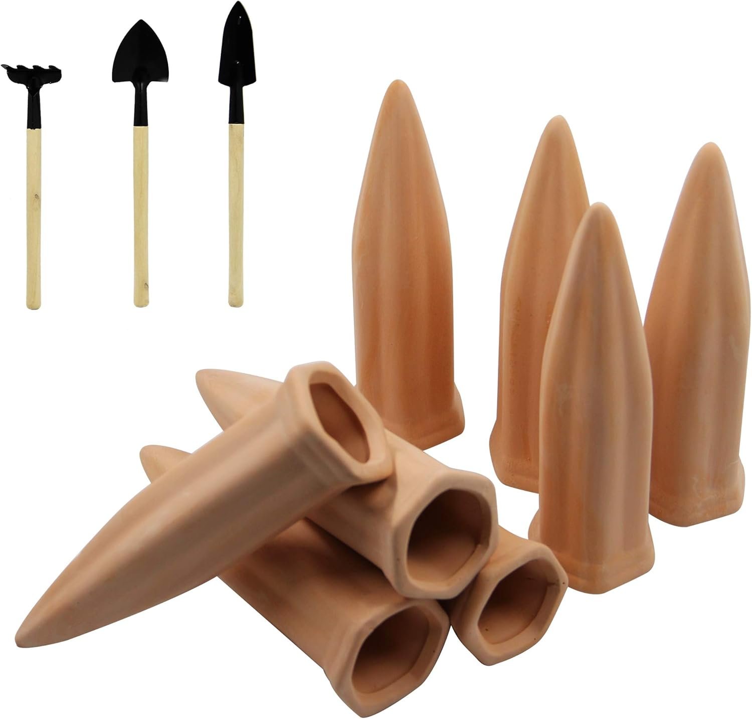 MorTime Plant Watering Devices, Plant Waterer Self Watering Terracotta Spikes Automatically Water Your Indoor and Outdoor Plants While On Vacation (8pc)