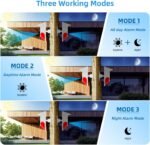 【3 Modes Function】Our outdoor motion sensor alarm provides 3 operating modes, A: 24-hour sound and light alarm mode B: daytime sound and light alarm mode (night does not work) C: night sound and light alarm mode (day does not work), you can flexibly adjust its working mode according to actual needs, enjoy a good user experience.