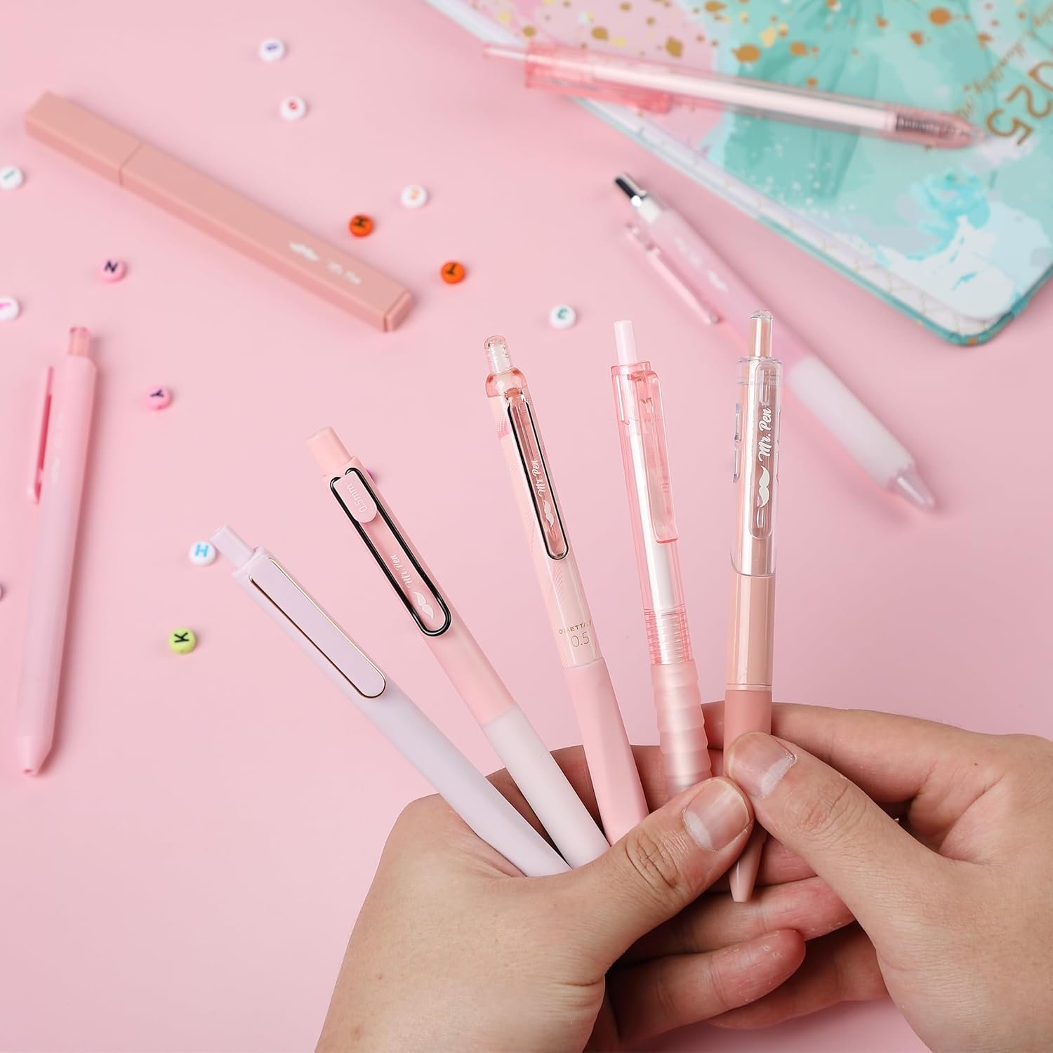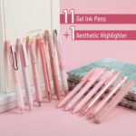 Mr. Pen gel ink pen set includes 11 beautifully designed pens with elegant pastel pink barrels and 1 matching highlighter for a cohesive and stylish stationery collection.