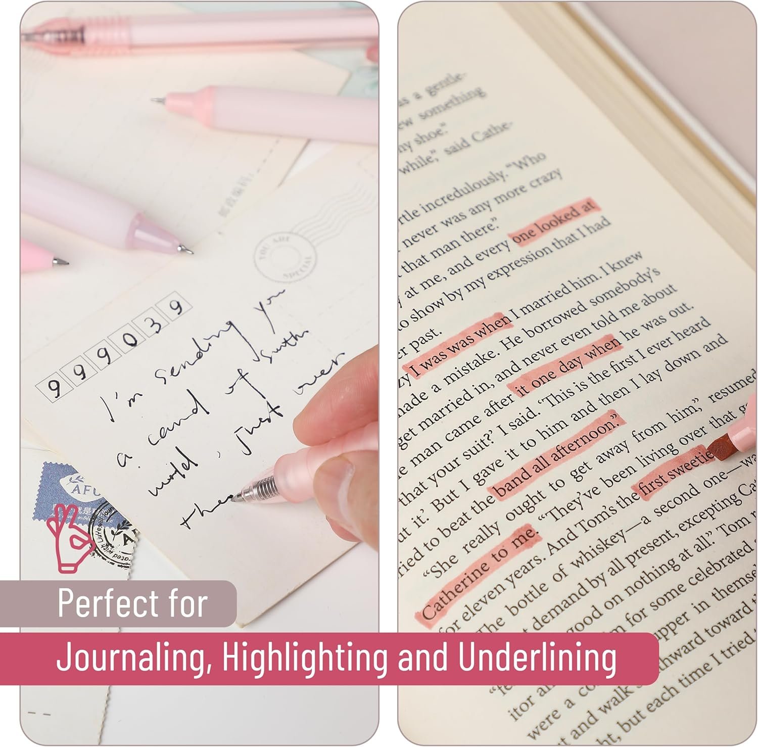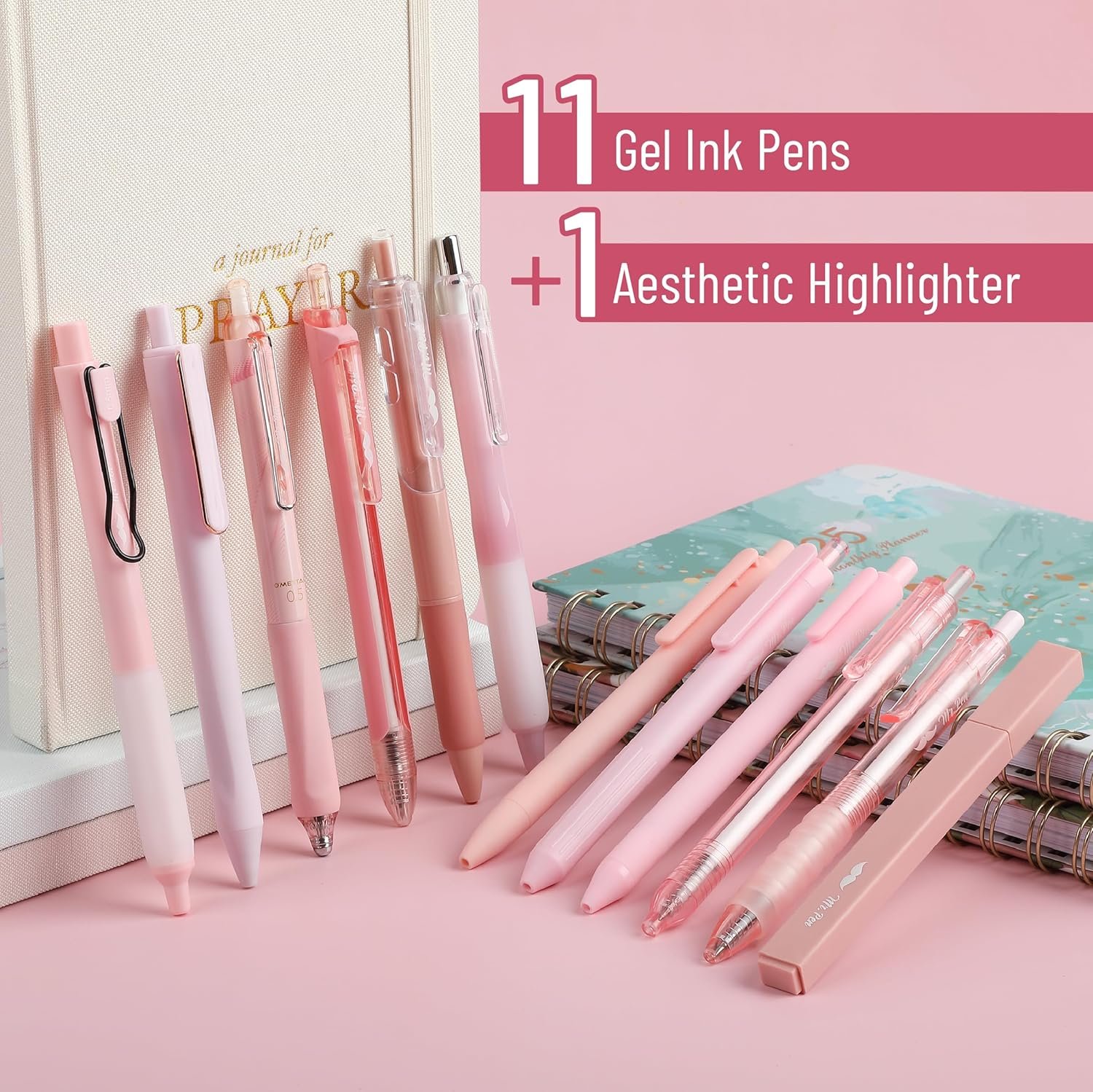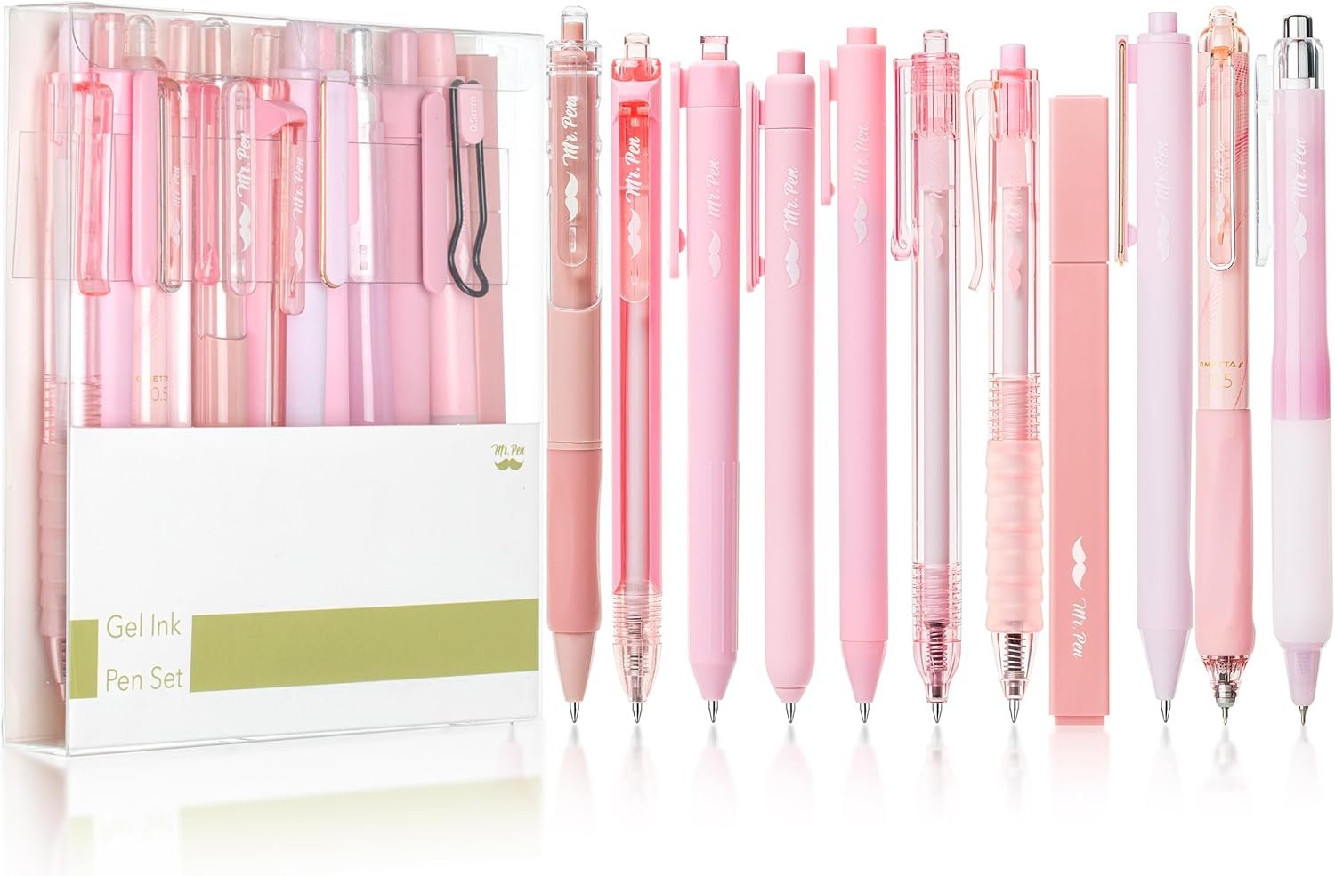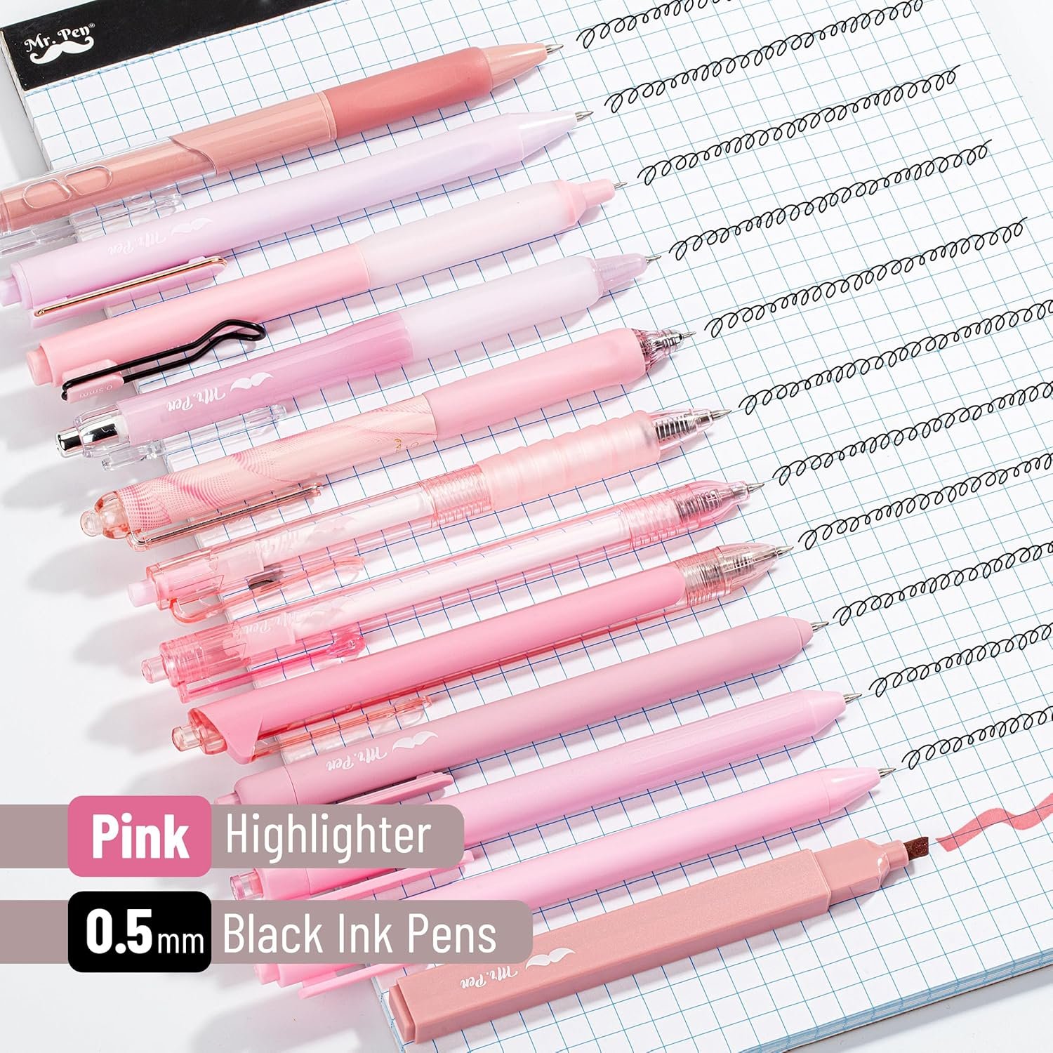 • Mr. Pen gel ink pen set includes 11 beautifully designed pens with elegant pastel pink barrels and 1 matching highlighter for a cohesive and stylish stationery collection.